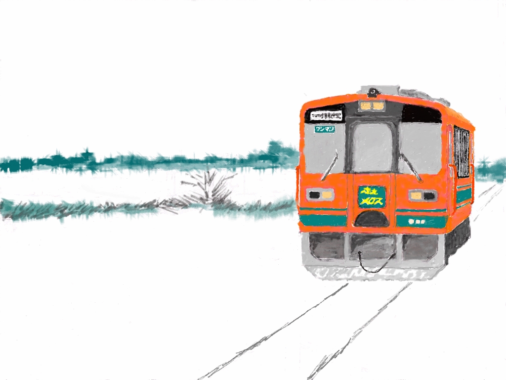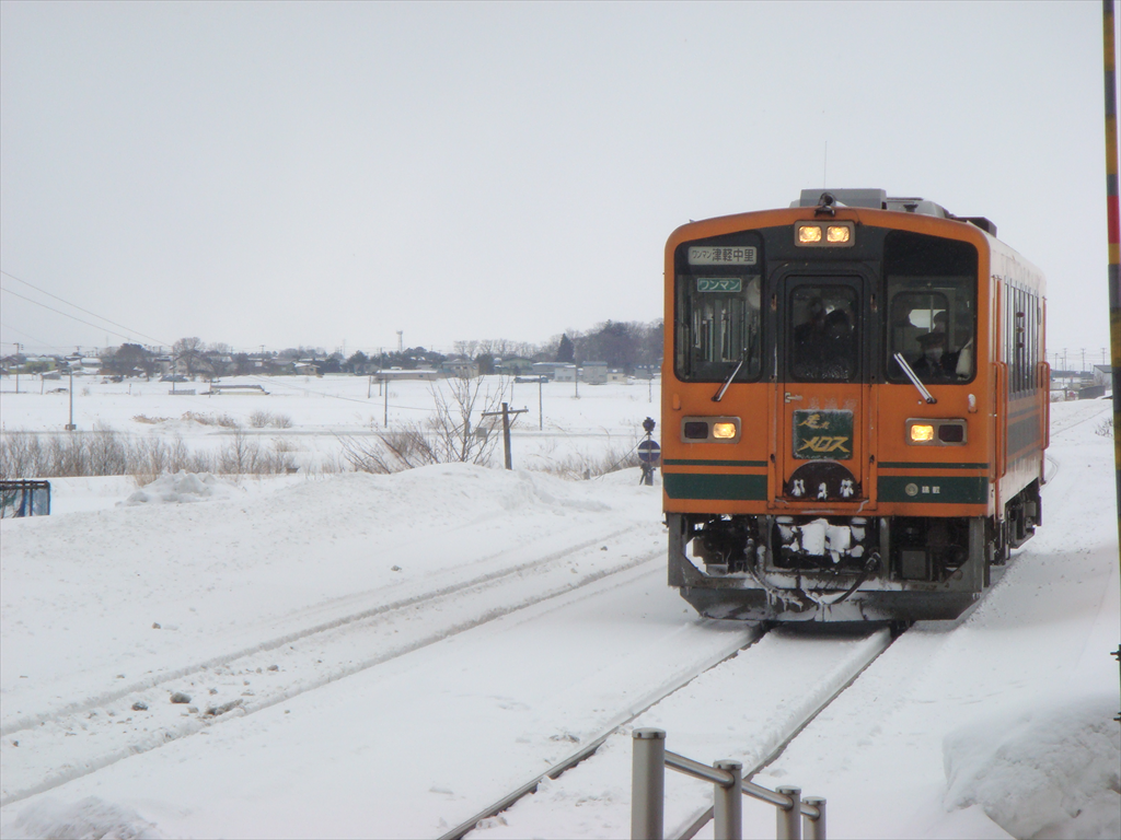 津軽21型気動車は、1996年11月に津軽鉄道全通66周年の際、新潟鐵工所で2両が新造された。沿線出身の作家である太宰治の作品から「走れメロス」の愛称がつけられている。2000年2月に3両を増備し、現在5両が在籍している。超満員のストーブ列車で金木まで行き、帰りに乗車した。日本で一番楽しいローカル鉄道。(2020.02)