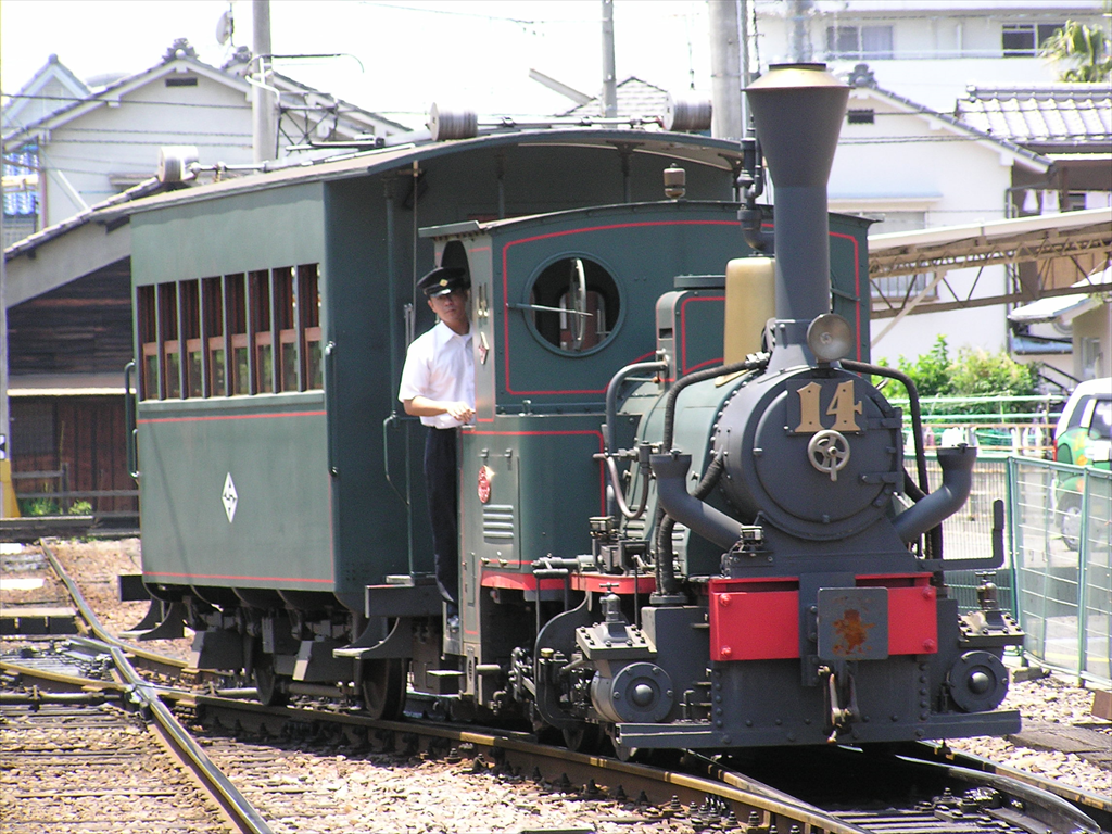 夏目漱石の小説『坊つちやん』の中で、「マッチ箱のような汽車」として登場したSL。2001年から伊予鉄道により松山市内の軌道で復元運行されている。木製シートに加え、サスペンションもないため乗り心地は最悪である。(2020.03)