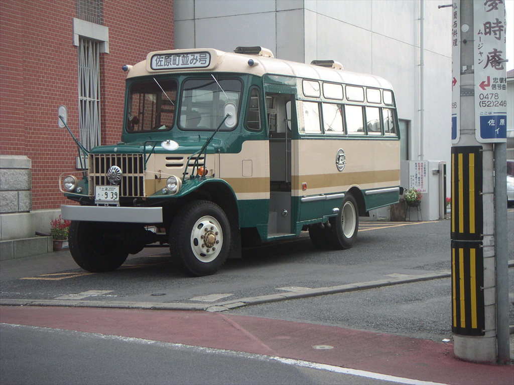 NPO法人「小野川と佐原の町並みを考える会」が運行している無料観光バス。車両は「いすゞTSD40(1968年式)」、角型の後ろ面に非常口を持つ北村製作所製ボディのボンネットバス。(2020.05)