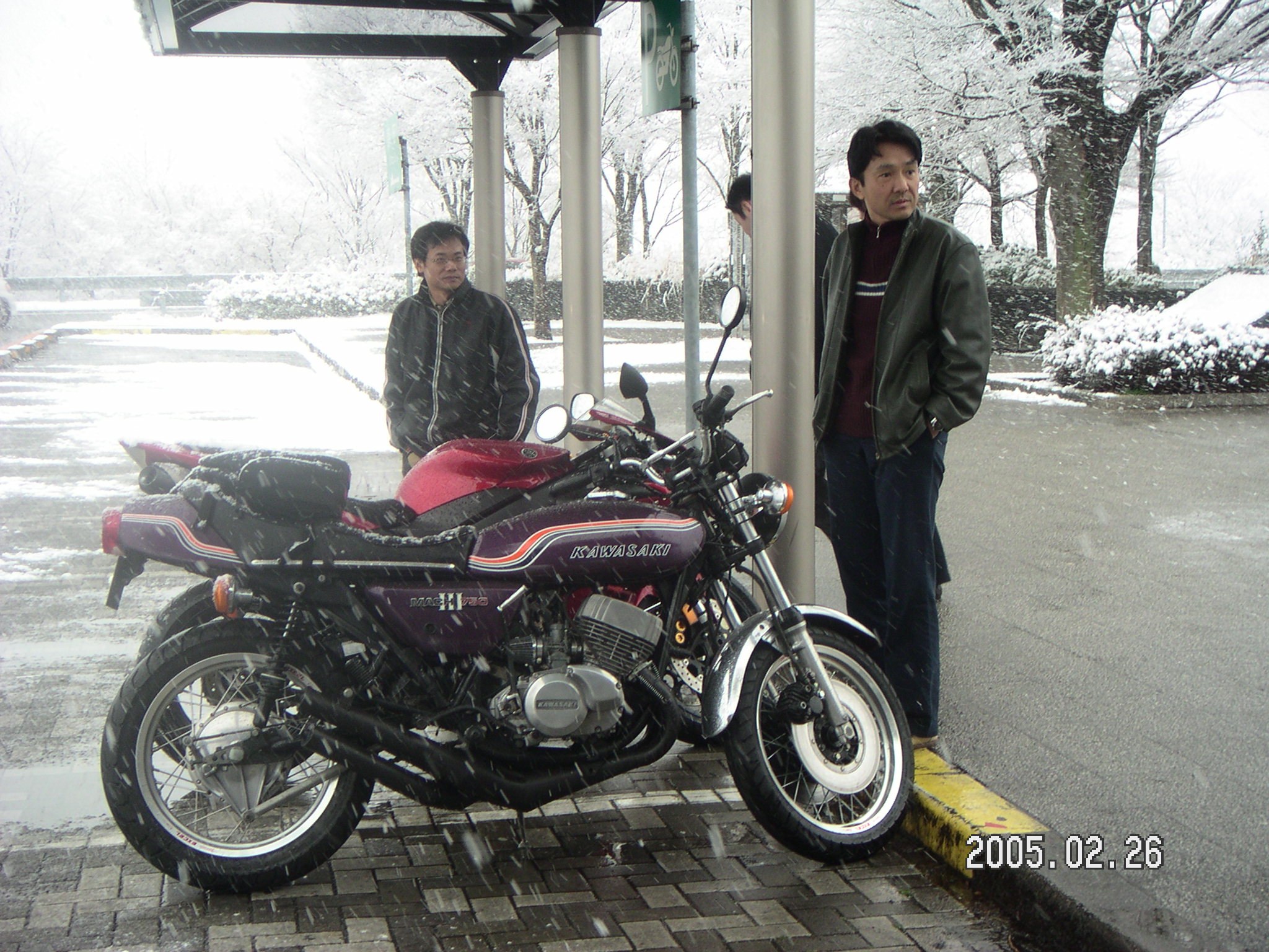 海老名では天気が良かったのに、御殿場を過ぎたあたりで想定外の雪になった。車は問題ないが、バイクには辛い状況になった。