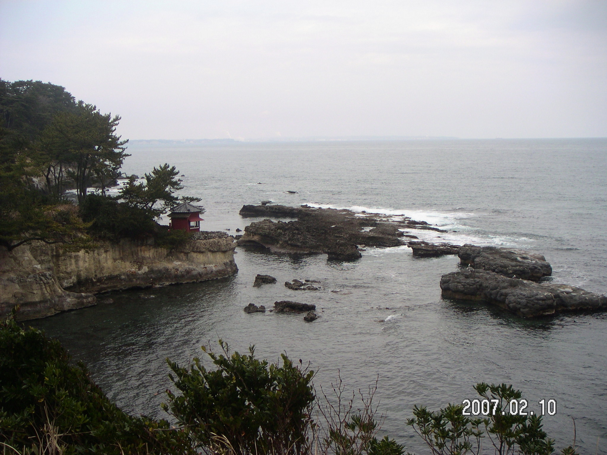五浦六角堂の海を挟んだ向かい側にあるのが五浦岬公園。公園の入口からまっすぐ歩くと岬の先端に出る。展望台まで登れば、五浦海岸の全景が望める。