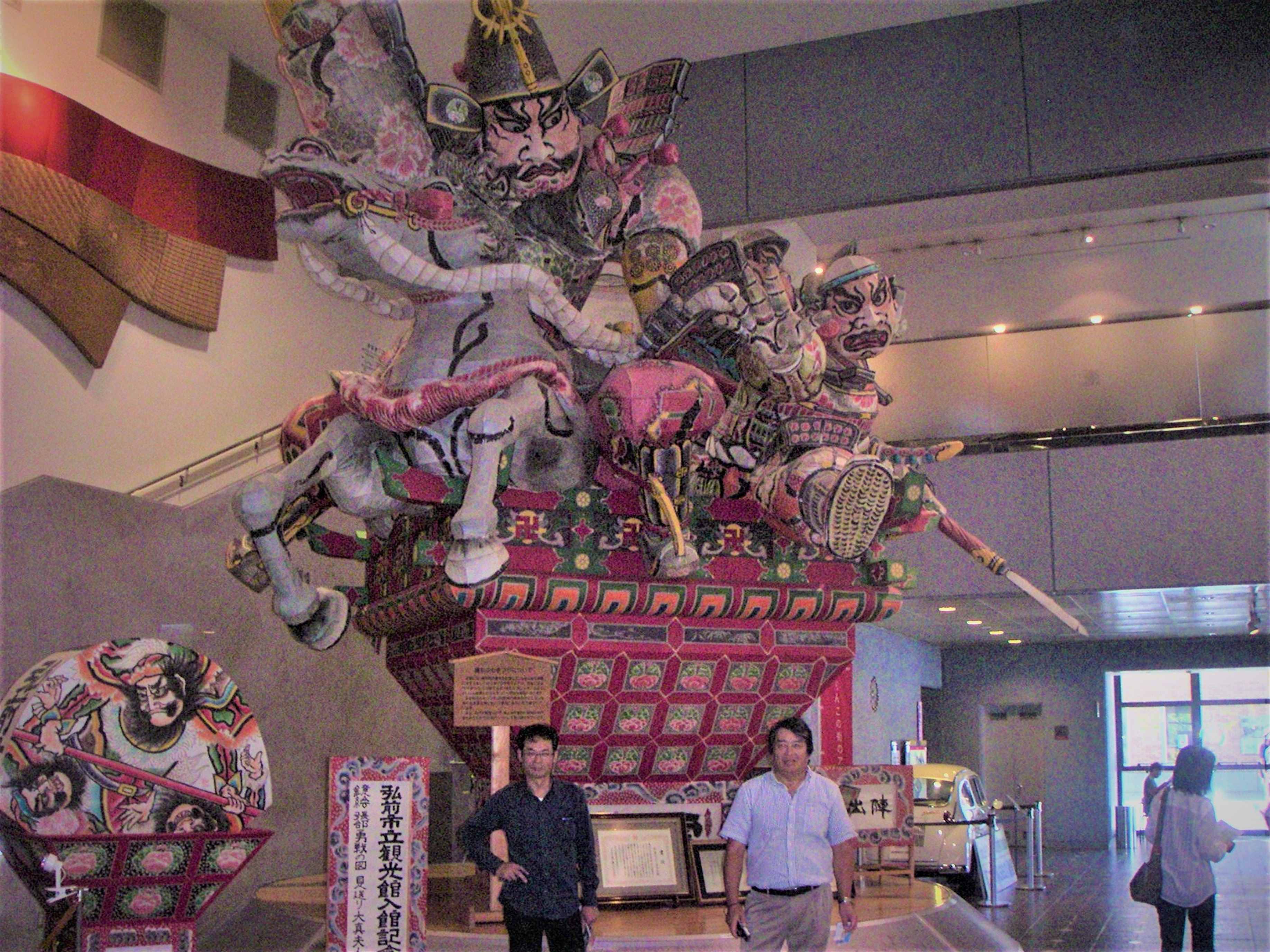 弘前市観光記念館の裏に、山車展示館がある。昔の藩主が八幡宮祭礼のために各町内に山車を造らせたという。明治15年以降、弘前八幡宮祭礼が途絶えてしまってから各町内の山車も散逸してしまい、現存しているのはここで保管している7台だけらしい。また、ねぷたまつりで使用する大太鼓も展示されていた。