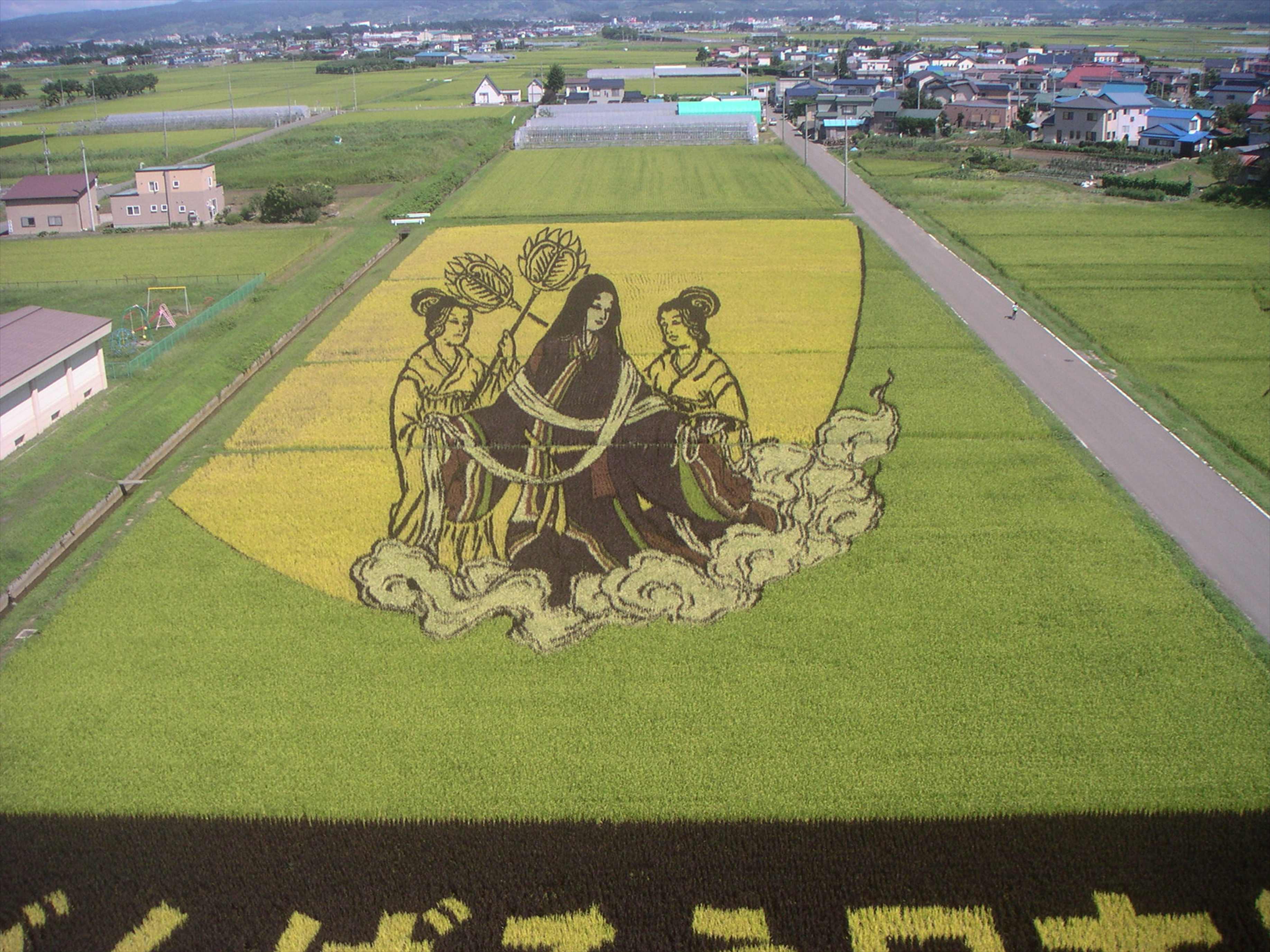 田んぼアートで有名な田舎館村に行った。今では全国的になった田んぼアートも、田舎館村が村おこしで始めたのが最初だった。一日の長があり、ここの田んぼアートはどこよりも見事である。第19回目のこの年のテーマは竹取物語だった。役場の一角に田舎館村展望台がある。天守閣のある奇妙な建物で、田んぼアートはここから綺麗に見えるようにデザインされている。最初に驚いたのはその大きさだった。絵画のような精緻な表現には感嘆するしかなかった。稲もいい感じに色づき、評判通りの素晴らしさだった。