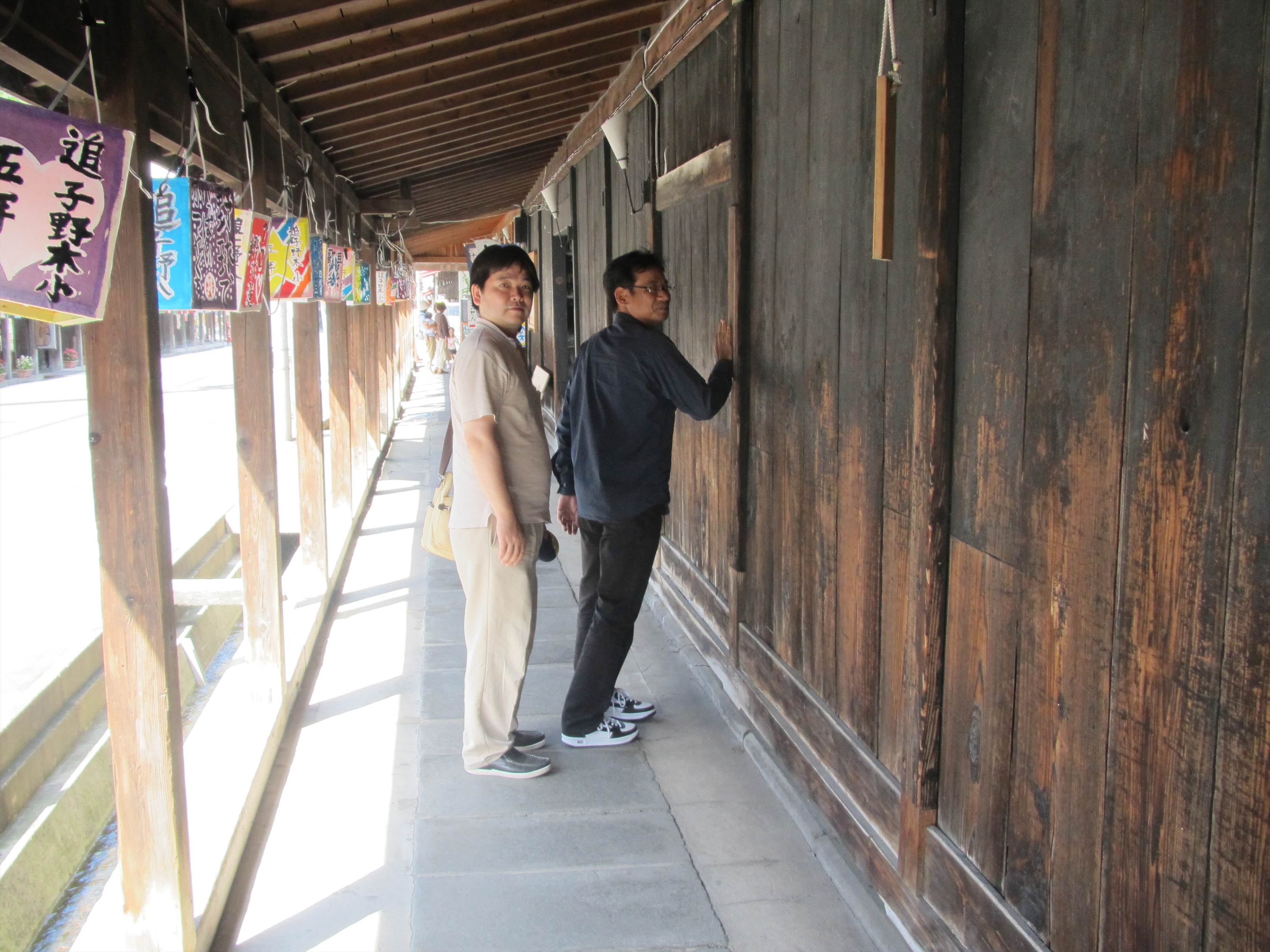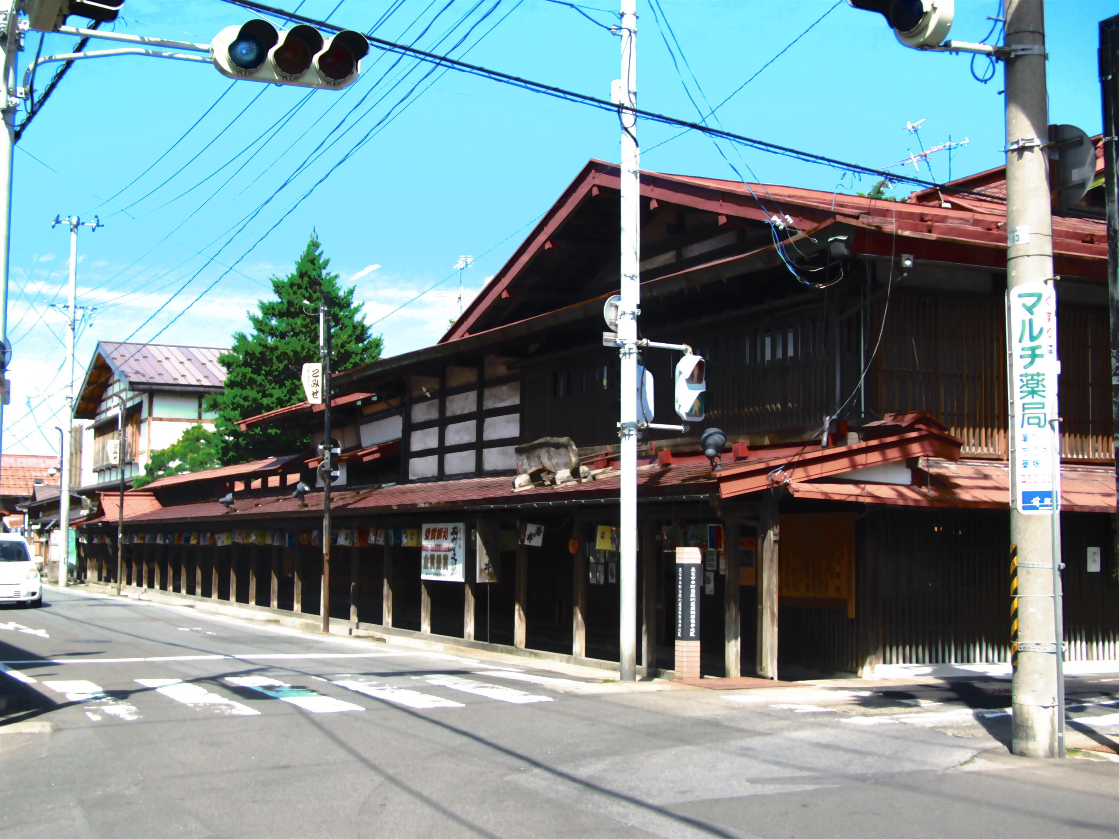 黒石では市役所に車を停め、中町のこみせ通りまで歩いた。江戸時代の風情を残す長さ100mのこみせの中に、国の重要文化財「高橋家住宅」を中心に造り酒屋や蔵などの民家が並んでいる。平成17年に「重要伝統的建造物群保存地区」に指定された。