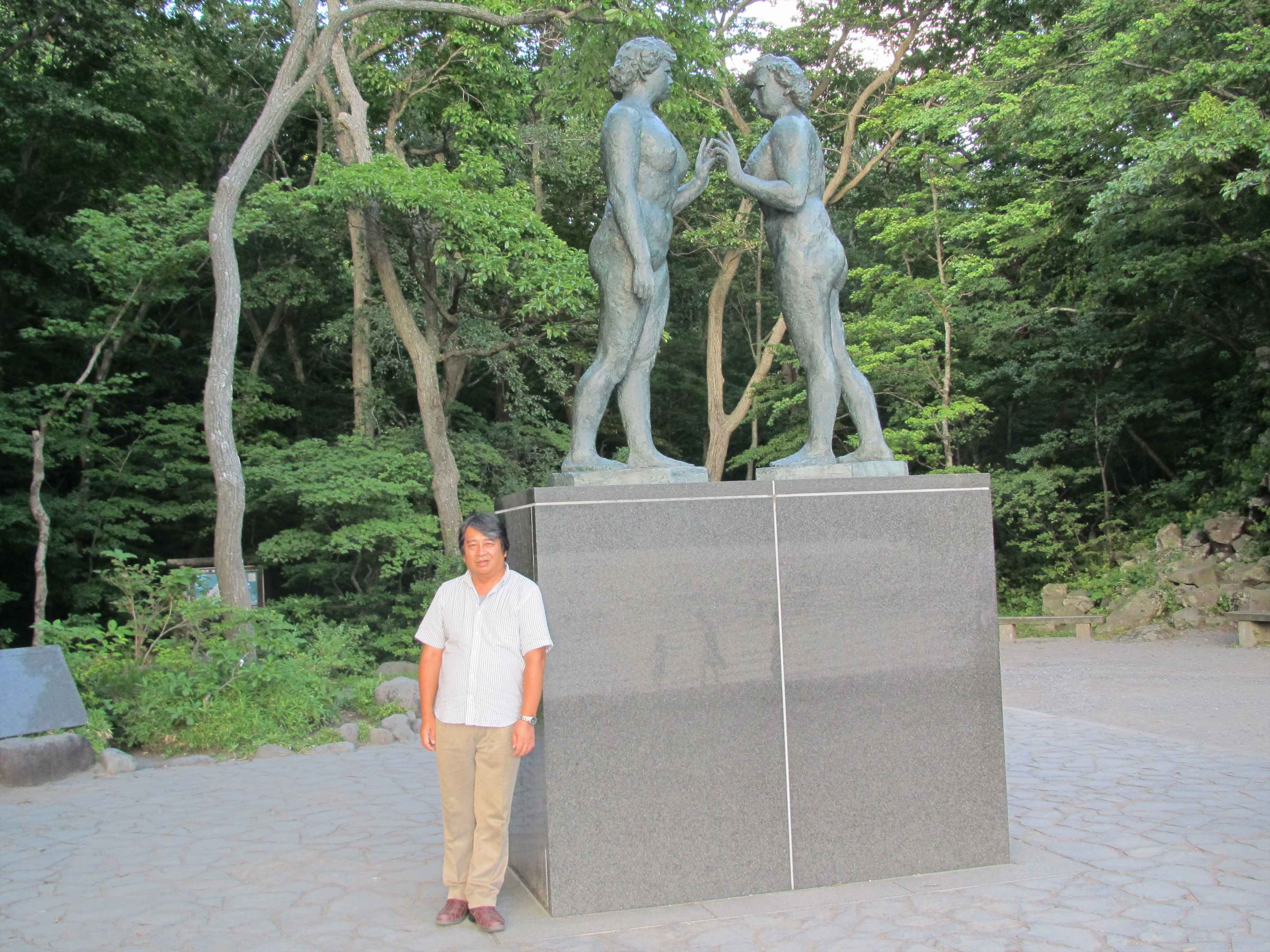 湖畔には、高村光太郎作のブロンズ像「乙女の像」がある。船からは遠すぎてよく見えなかったので、下船したあと、湖畔を歩いた。遊歩道が整備されており、とても雰囲気がよかった。