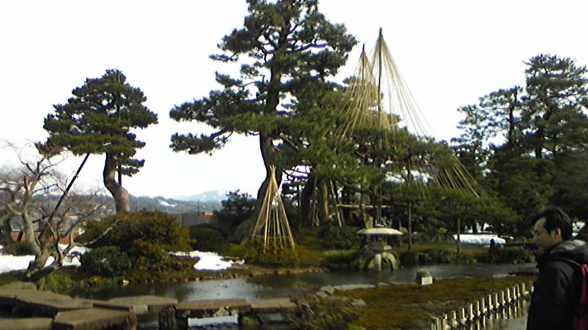 兼六園は廻遊式庭園で、歩きながら景観の変化を楽しむ趣向になっている。神仙思想に基づき、大海に見立てた大きな池とその中に不老不死の神仙人が住むと言われる島が配置されている。と聞かされても、造詣がないのでよく分からない。雪のない寒々とした庭園をダラダラと歩いただけで、景観についてはほとんど記憶がない。