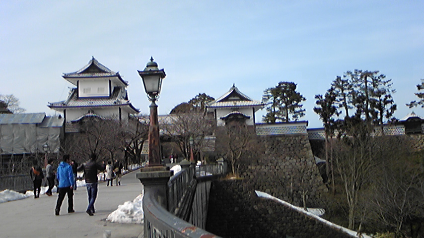 城は大手門から入るのが普通だが、金沢城の場合は兼六園の近い石川門から入るのが一般的である。石川門と兼六園の間には橋がかかっており、この橋の下にはかつて百閒堀という堀があった。兼六園も城の東側を守る軍事拠点だったことが分かる。明治以降、堀は埋め立てられ、城の中には陸軍の司令部が置かれ、戦後は金沢大学のキャンパスに使われたりなどもした。加賀百万石も随分粗末に扱われたものである。平成8年に石川県が国から金沢城址を取得し、金沢城址公園として整備を始め、徐々に往時の姿を取り戻しつつある。復元されたばかりの五十間長屋を見学したが、真新しいせいか、城というよりも体育館のようだった。城らしくなるにはそれなりの歳月が必要らしい。