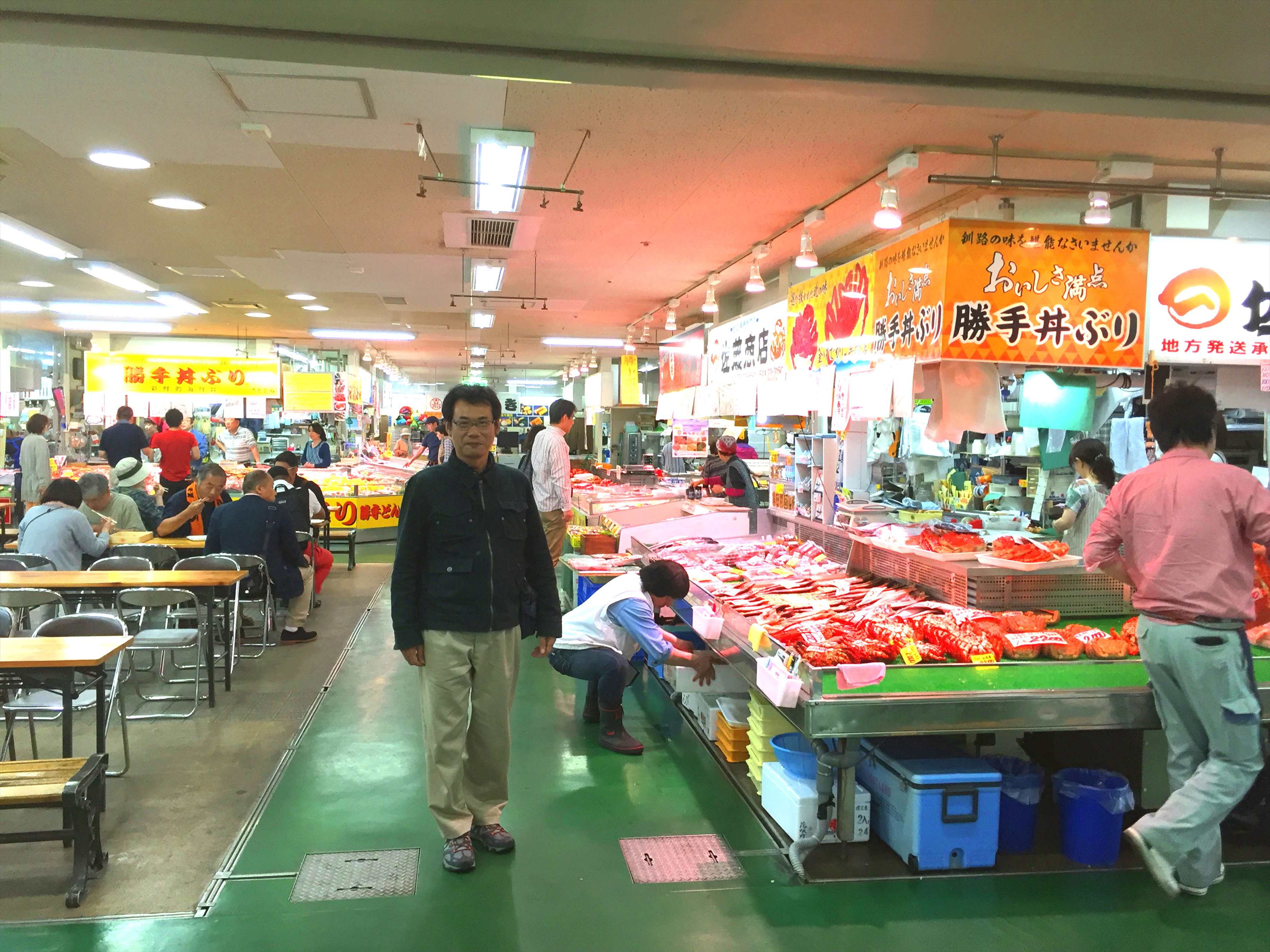 釧路和商市場は、JR北海道釧路駅西方にある公設の市場で、釧路市民の台所として親しまれている。鮮魚をはじめ、青果、花、薬、そば、菓子、漬物、精肉、雑貨、寿司など百店舗近くが店を並べている。また、ご飯にお気に入りの魚介類を買って載せ、自分好みの海鮮丼を作って行く勝手丼のサービスが有名である。勝手丼は観光客相手で、地元民は食堂を利用するというというが、こちらは観光客だから迷うことなく勝手丼だ。
