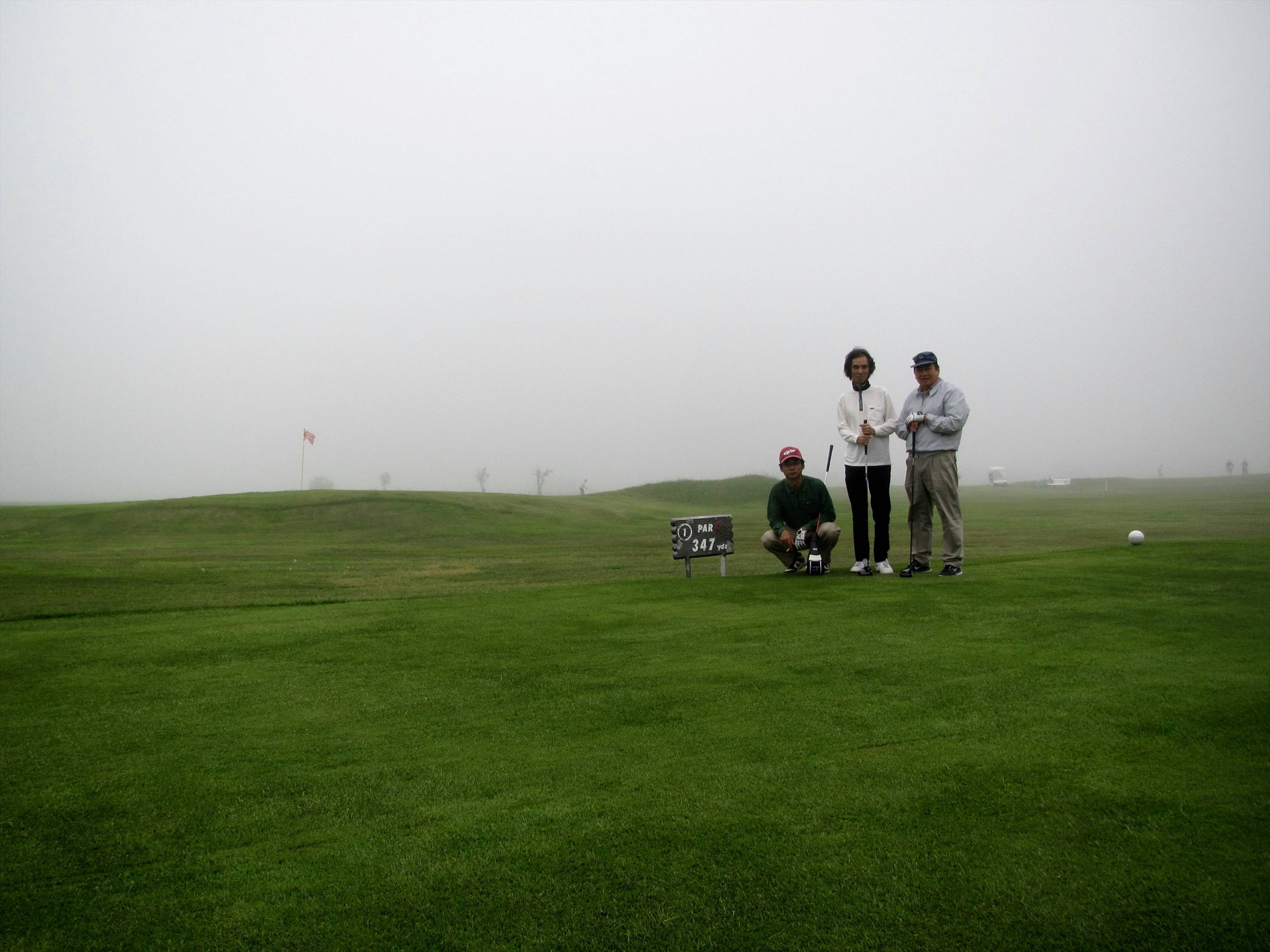 日本最東端のティーは1番ホールになる。この日の視界は50ヤードぐらい。ほとんどのホールが直線的なレイアウトなので、とにかく真っすぐ打っていくしかない。そして、打ったボールをカートに乗って探しに行くのだが、やはり簡単には見つからなかった。9ホールを回り終えた頃には気温も下がり、かなり寒かった。誰もいない1番ホールのティーグランドをキタキツネが平然と歩いていた。