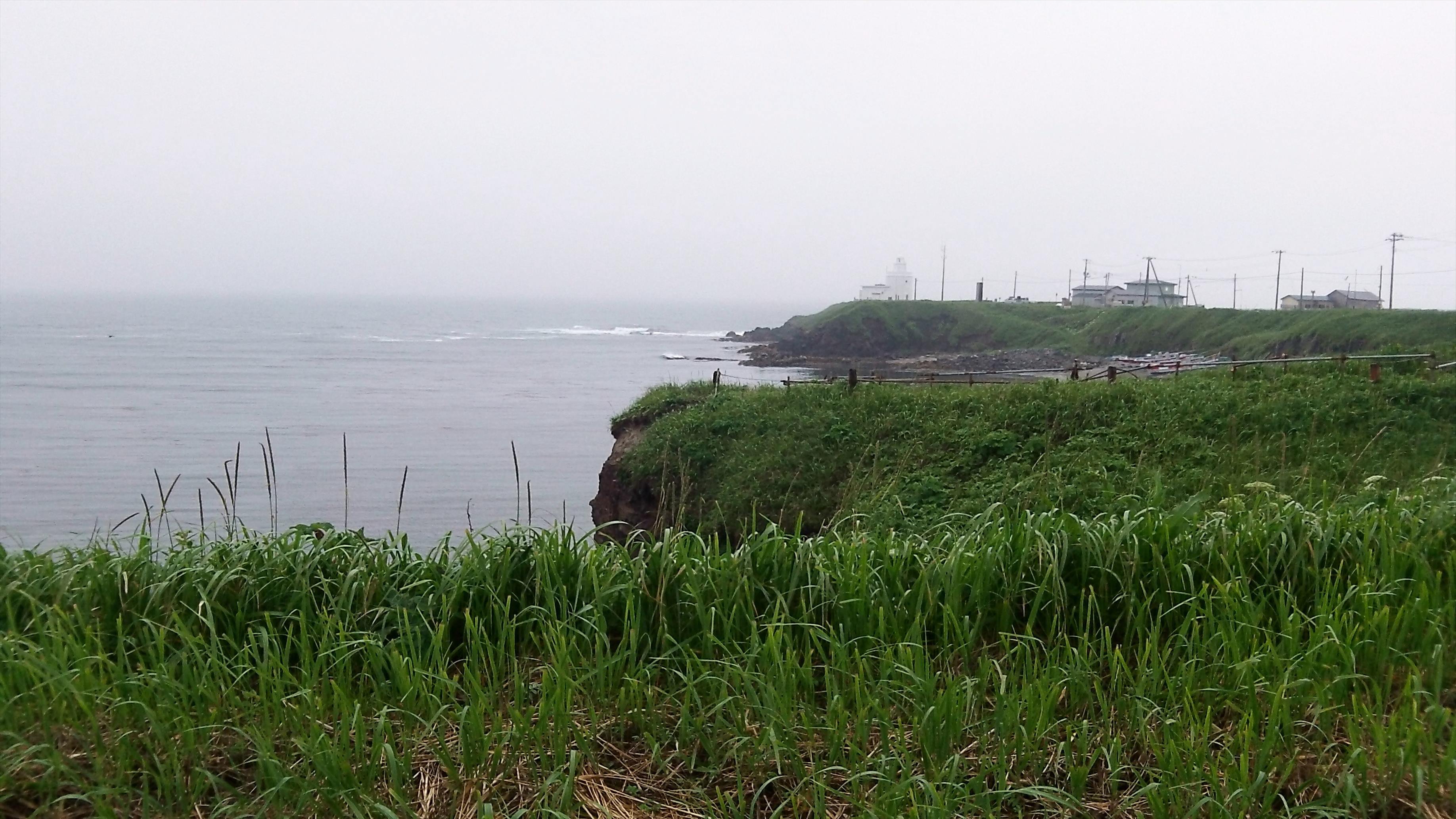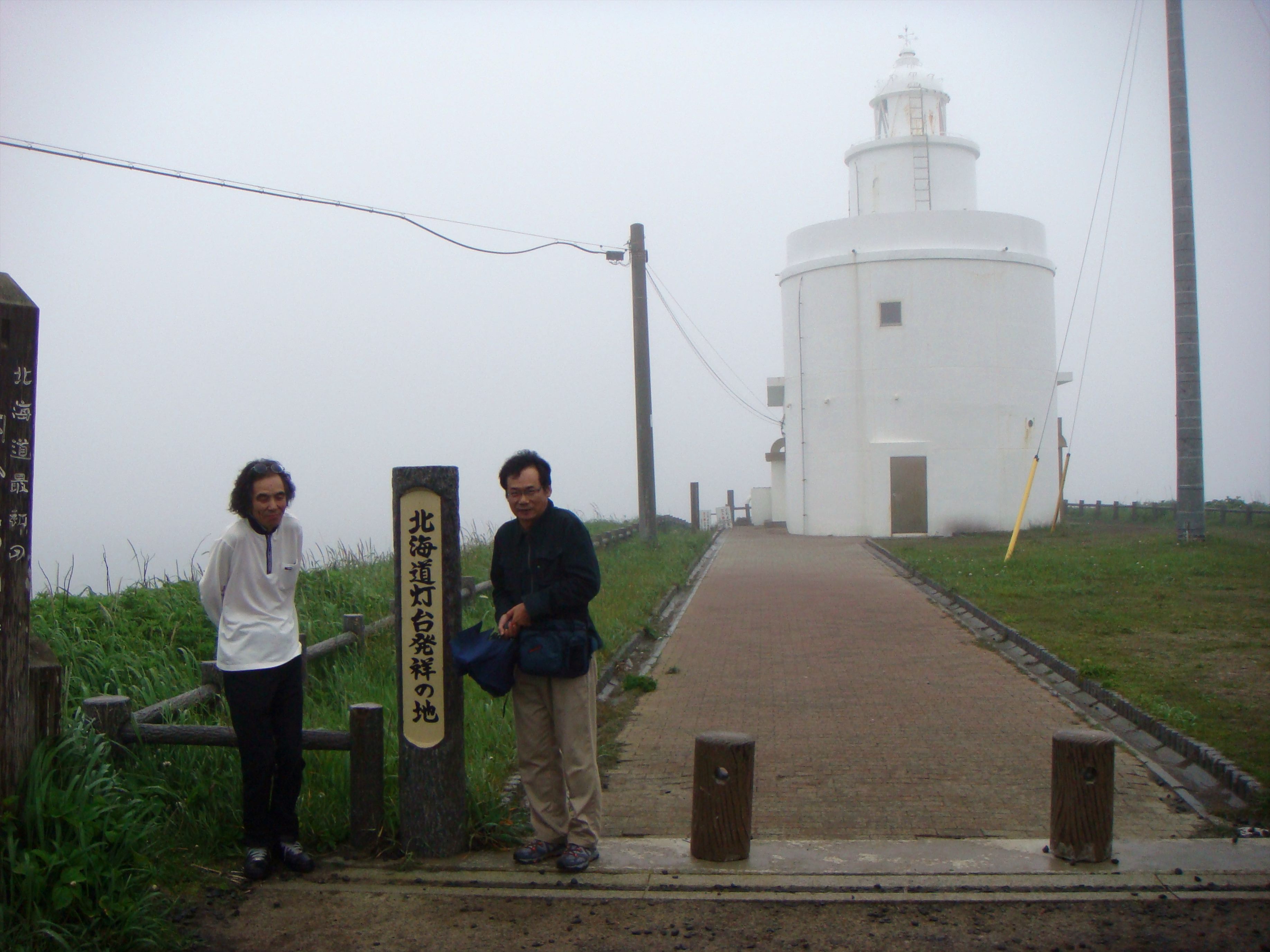 根室ゴルフクラブのプレー後、納沙布岬を目指した。最初に向かったのは納沙布岬灯台である。霧に加え雨まで降ってきて、かなり寒くなった。時間は17時を過ぎていたので、周囲に観光客はいなかった。ここは歯舞群島貝殻島まではわずか3.7kmしか離れておらず、ロシアの巡視艇が海上に頻繁に姿を現すという。しかし、濃い霧のため、その姿はまったく確認できなかった。