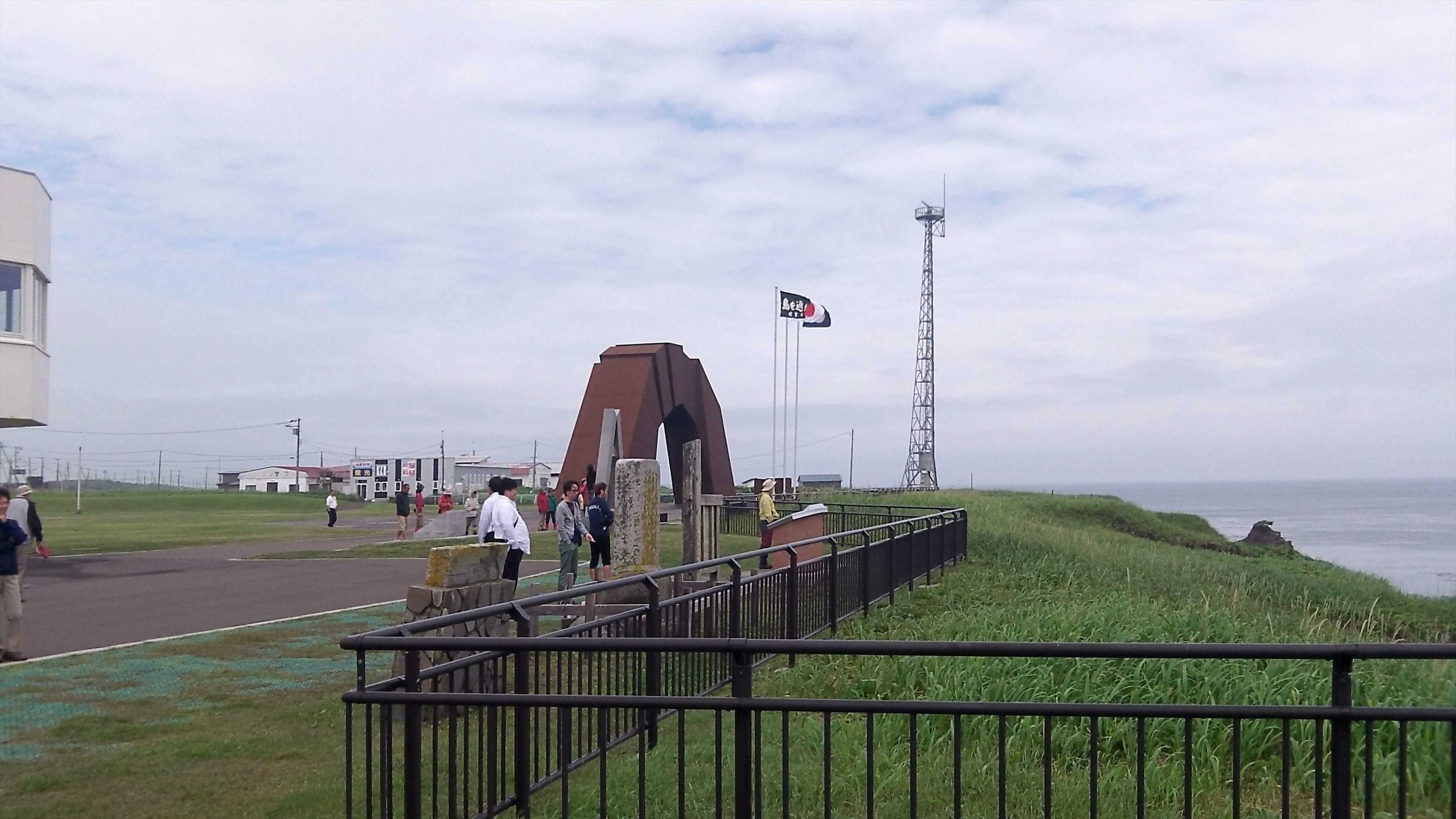 夕食は日本最東端の食堂、鈴木食堂で取る予定だったが、もう閉まっていた。営業時間は18時までのはずだが、人がいないので早仕舞いしたらしい。しかたがないので、望郷の岬公園に向かったが、こちらにも人影はなかった。北方館、望郷の家、望郷の塔、いずれも閉館していた。四島のかけはしという大きなモニュメントの下には「祈りの火」と呼ばれる点火灯台がある。ここの火も、すでに落とされていた。どうやら17時ですべて終わるらしい。