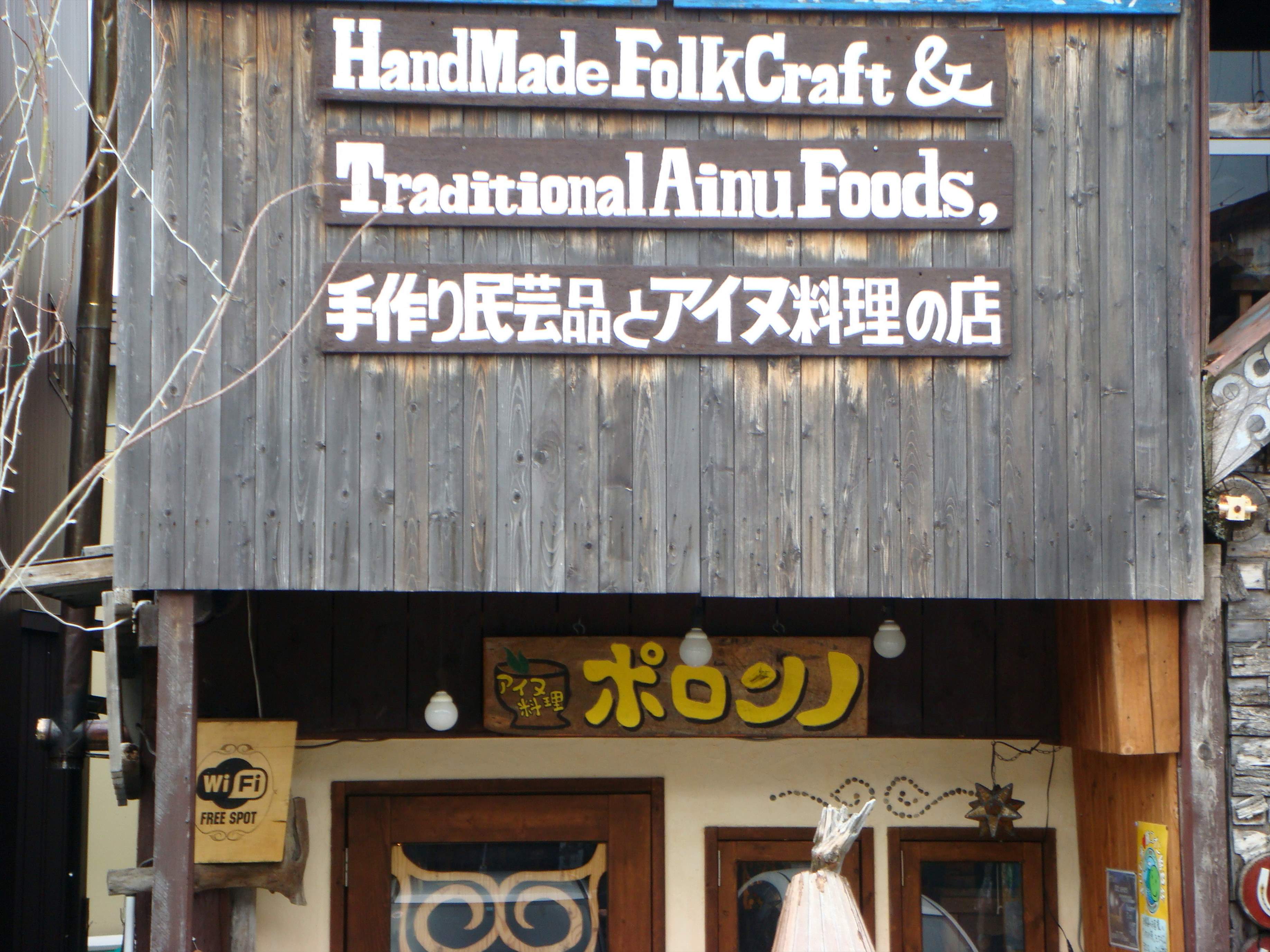 昼食は、アイヌコタン内の「ポロンノ」という喫茶店にした。どこの店にもアイヌ料理と書かれているが、メニューを見て、アイヌ料理らしい店はここだけみたいだった。