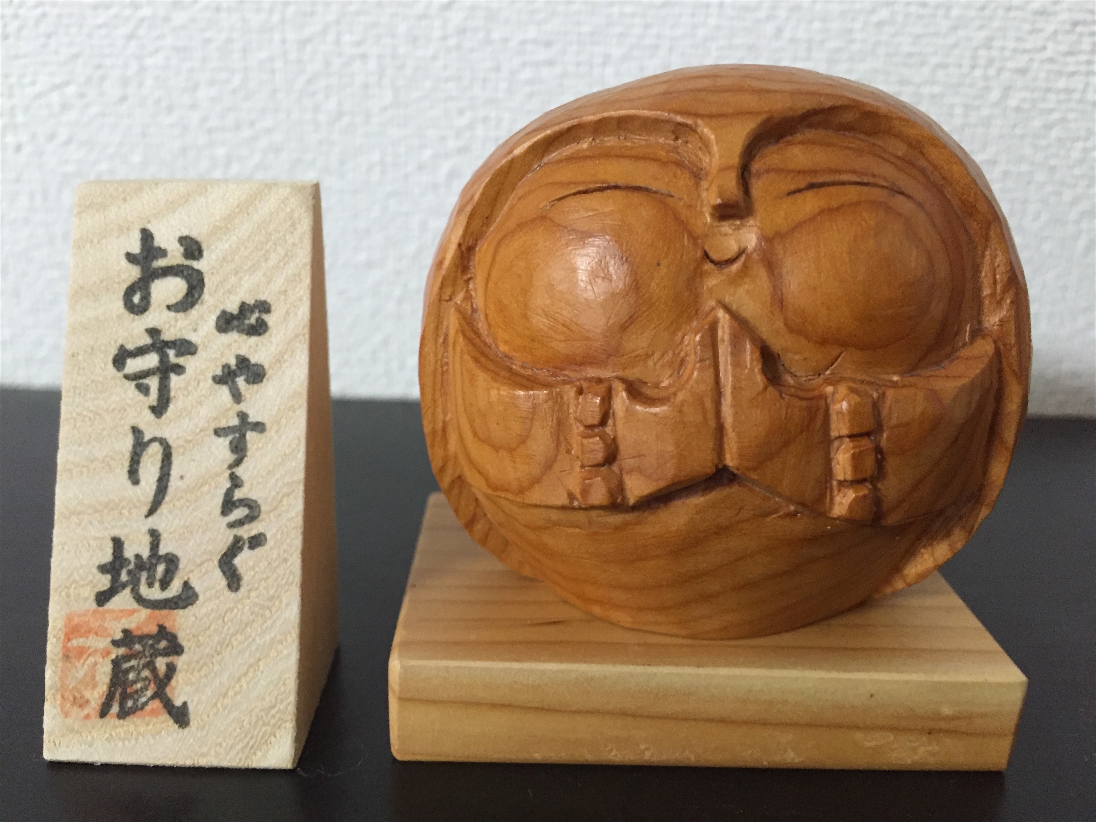 食後、木彫りの民芸品店「イチンゲの店」に入った。数多くの作品が所狭しと置かれている中で、「心やすらぐ お守り地蔵」に目が留まった。そのふくよかな慈悲深い表情に魅せられてしまった。後で調べてたら、店主の瀧口政満さんは、数々の賞を受賞した有名な彫刻家だった。アイヌ民族ではなく、アイヌ彫刻に魅了されて、ここに移り住んだそうである。三歳の時に高熱が原因で難聴になったそうで、いつも補聴器をつけている。材料全体の形、流れるような木目やこぶを見つめると作品構想がわき、それが作品の模様に生かされていくという。「心やすらぐ お守り地蔵」を見れば、なるほどと得心。