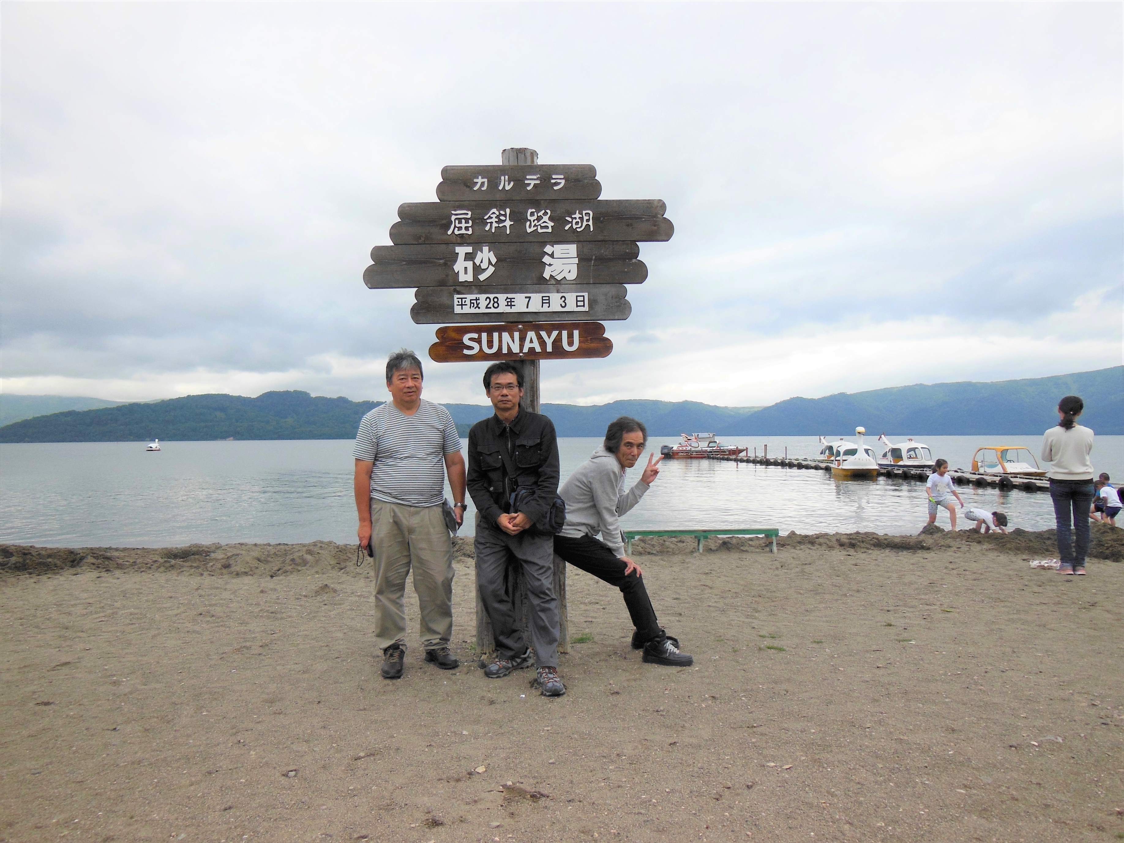 屈斜路湖の砂湯は洗練された観光地で、午後の3時なのにまだ多くの家族連れでにぎわっていた。ここは砂浜を掘ると温泉が出てくるという珍しい場所で、実際に砂を掘ってみると、砂の中から人肌の湯が染み出してきた。