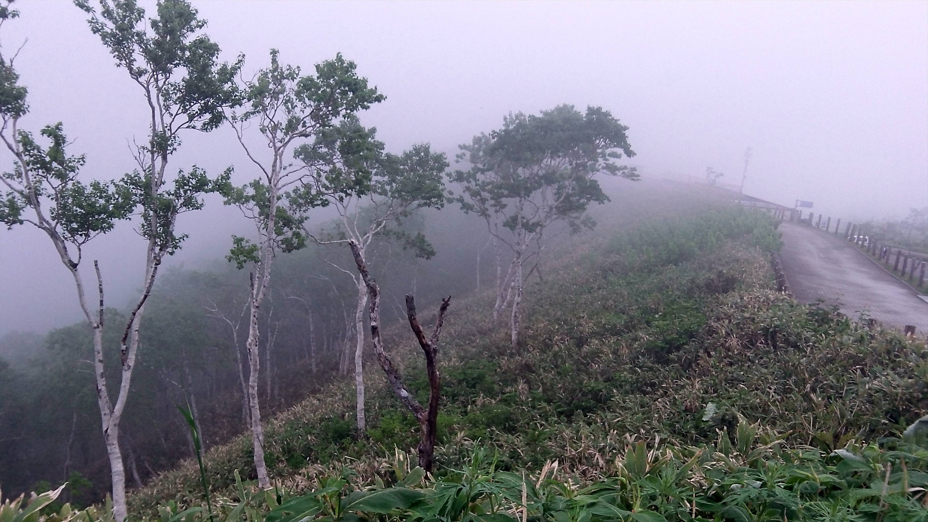 硫黄山から摩周湖に向かった。前方には大型観光バスがいて、同じ方向に走っていた。摩周湖でも中国人の集団に遭遇するのかと思ったら、少し憂鬱になった。摩周湖に近づくと、道路がうっすら霧に覆われてきた。その時点で、結果は想像がついてしまった。案の定、湖の気配さえ感じられないほどの厚い霧で覆われていた。