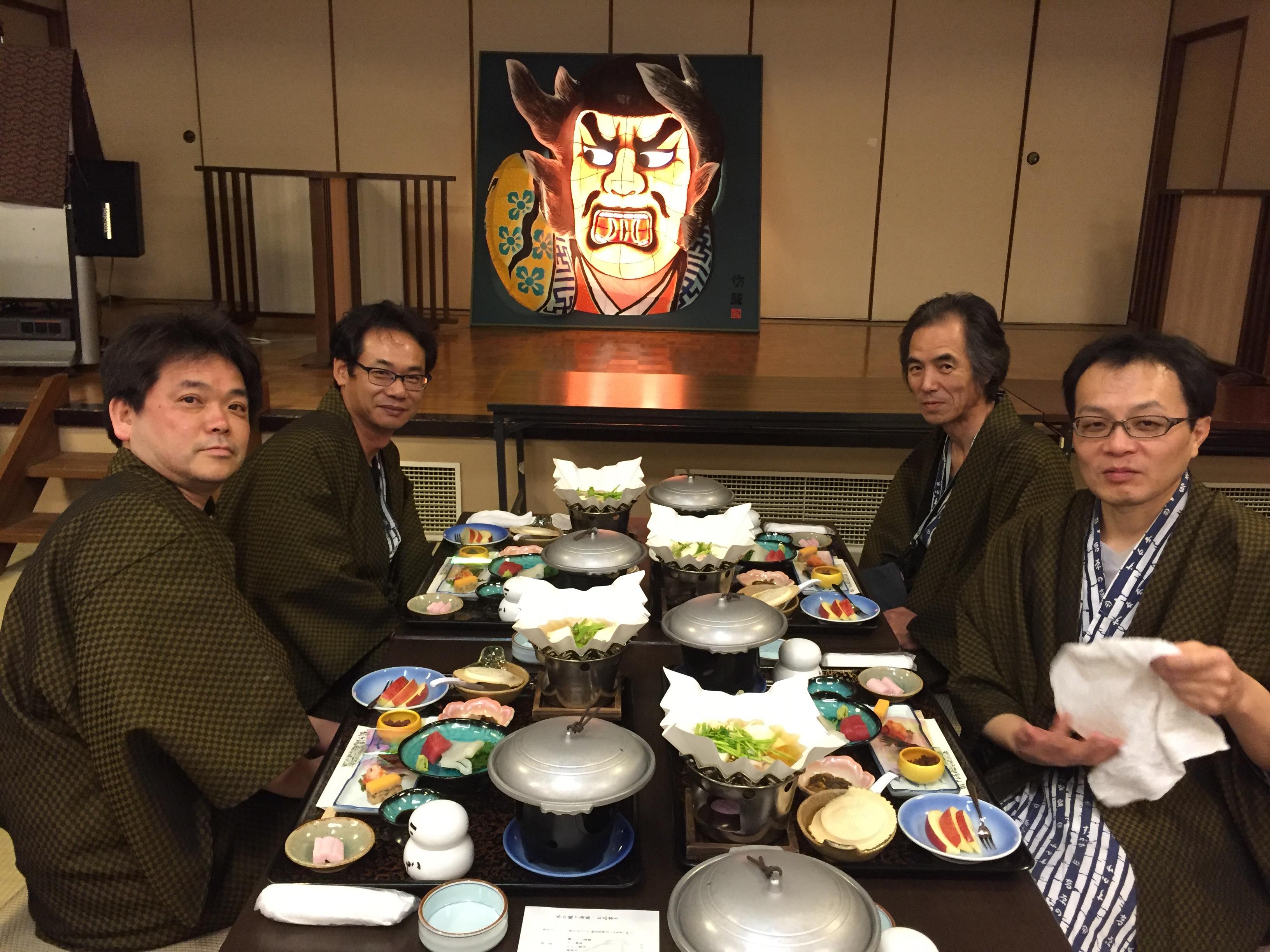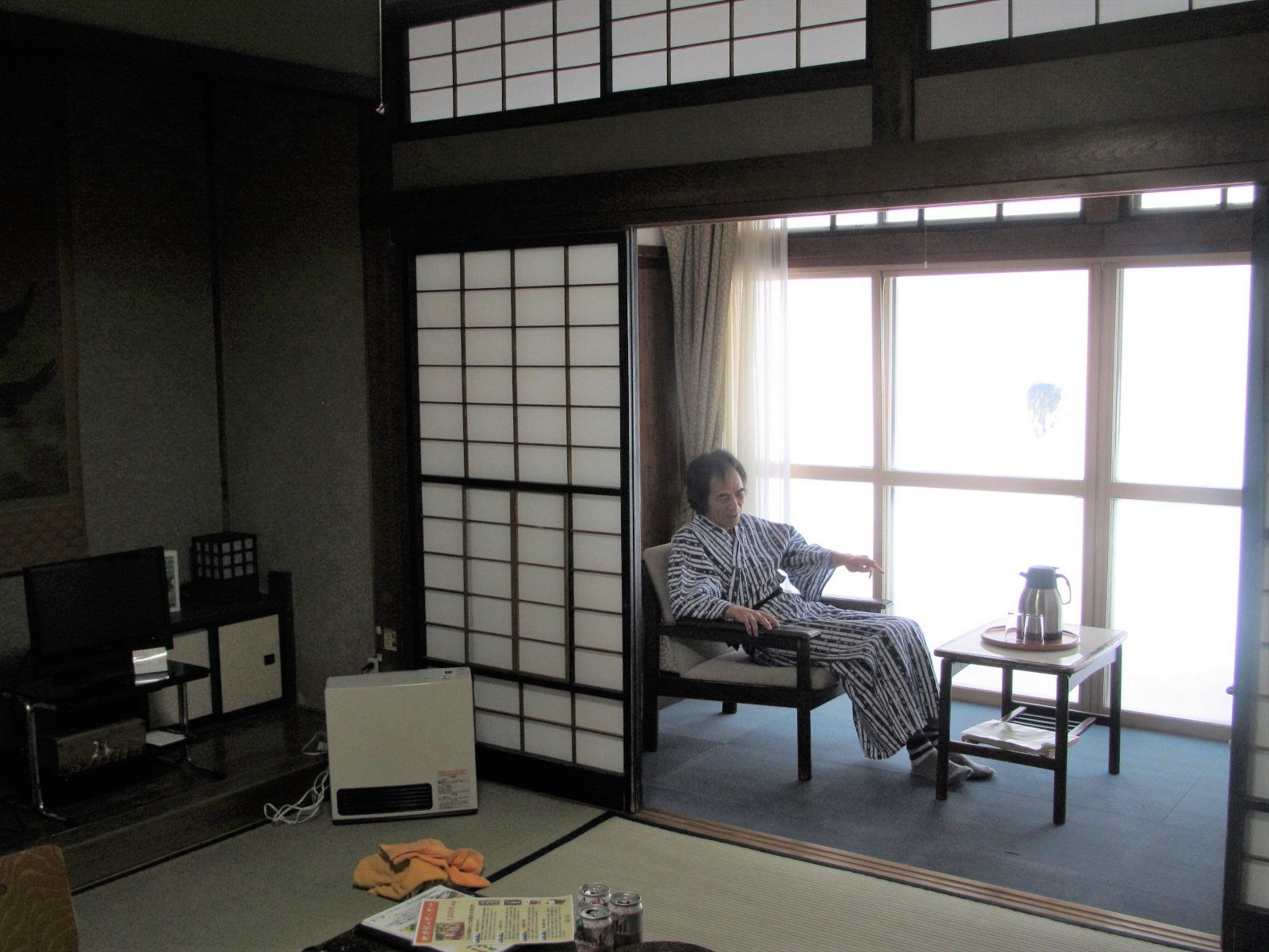 部屋は8畳の和室に広縁が付いていた。5人なので2部屋に分かれたが、間取りは同じだった。全室禁煙になったという話を聞いていたが、部屋には灰皿が置いてあった。どうやら禁煙はやめたらしい。暖房はガスストーブで、部屋だけでなく、廊下やトイレにもガスストーブが置いてあった。それでも廊下は寒かった。歩くたびに軋む廊下の音が静かに過ごすことを強制しているような気がした。騒いではいけない場所なのである。