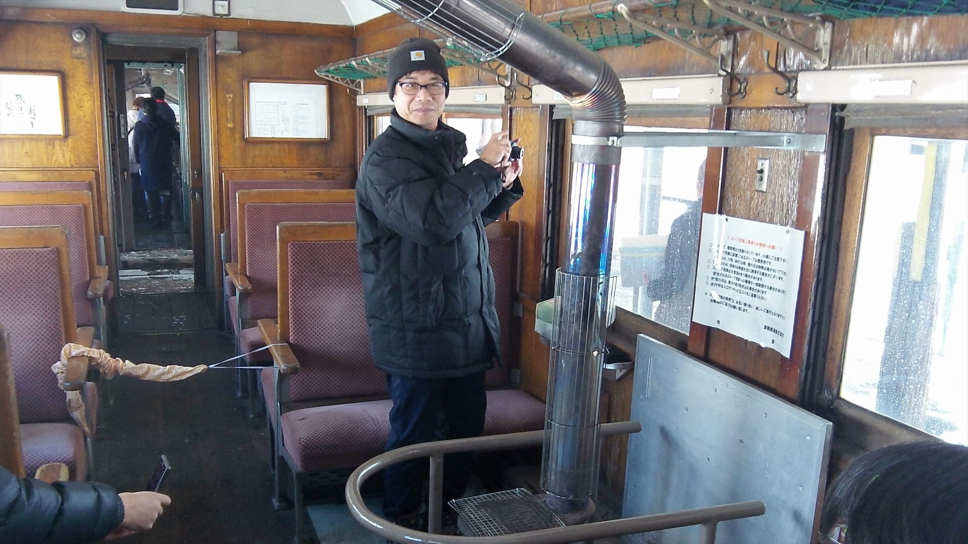ストーブ客車には乗車券のほかに、400円のストーブ列車料金がかかる。これは年間1200万円の維持費用を賄うための措置だという。予約してあった「ストーブ弁当」を受け取り、さっそく乗車。運よく、ダルマストーブに最も近い席に座れた。