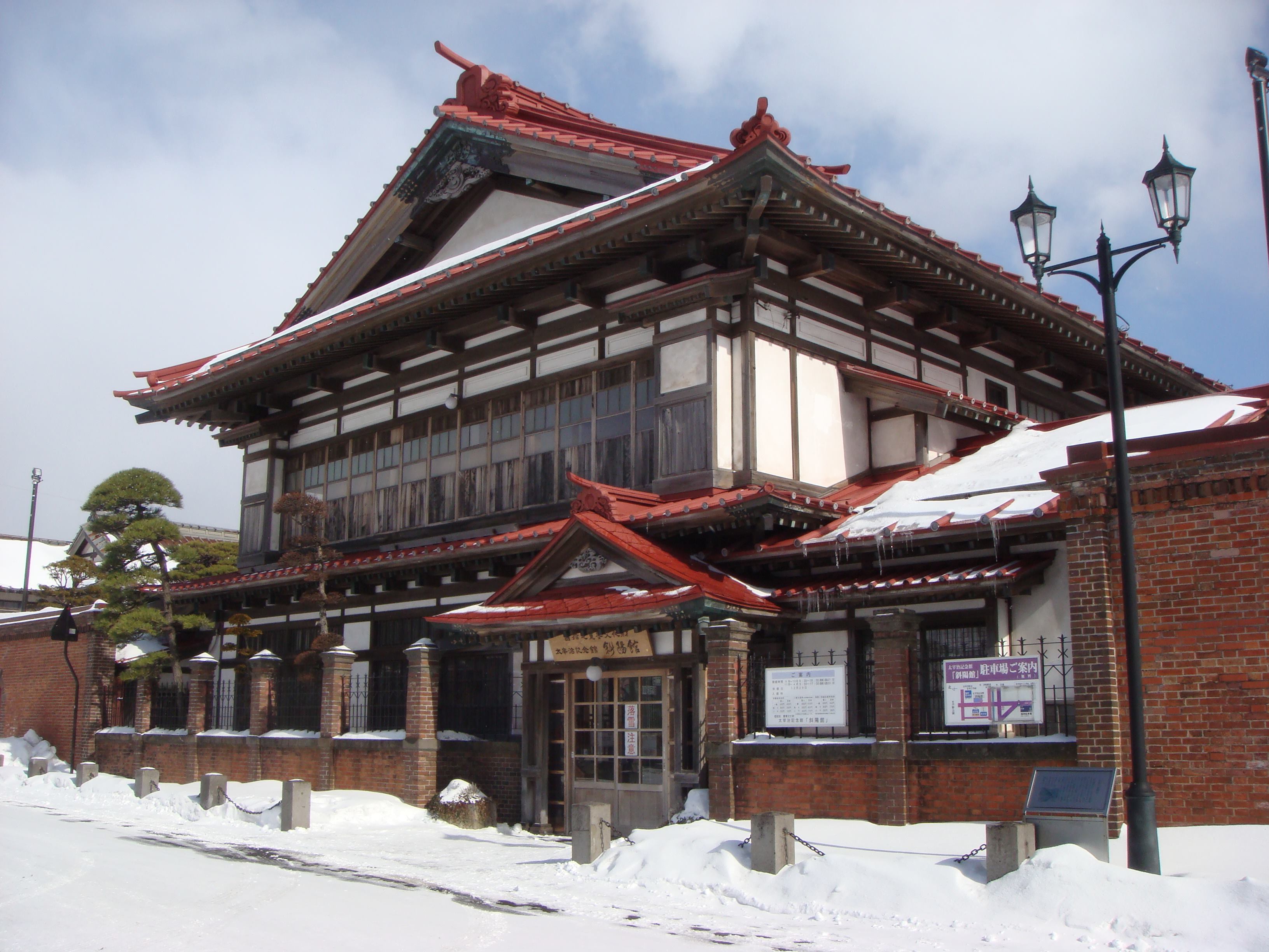 太宰治の生家「斜陽館」は、金木駅から徒歩10分足らずの場所にある。津軽鉄道沿線ではもっとも著名な観光スポットだが、年間の来館者は10万人程度である。それでも、「太宰治生誕○○年」などのアニバーサルイヤーには100万人を超える来館者があるらしい。