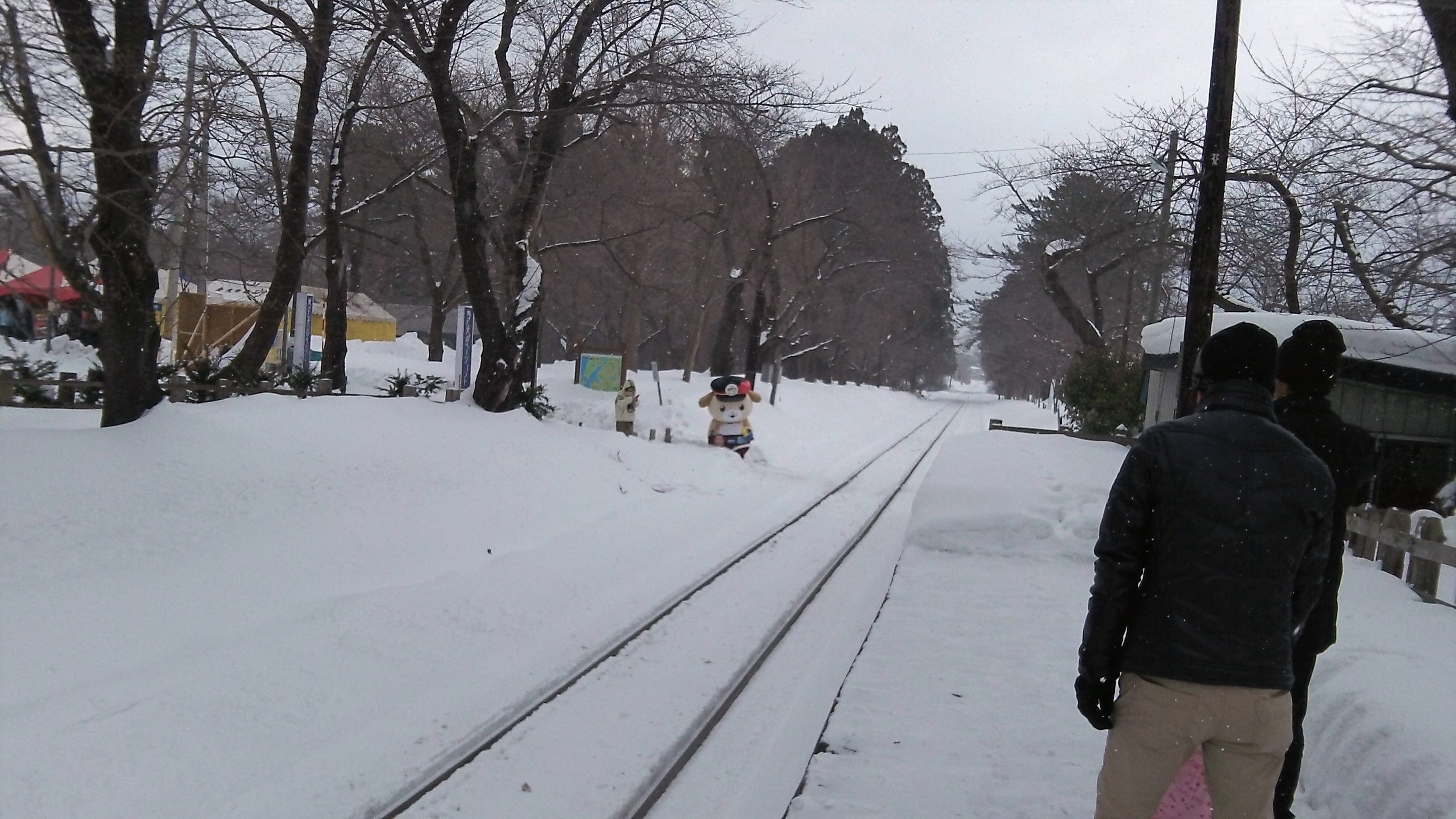 この日、芦野公園では津軽まつりが開催されていて、津鉄のゆるキャラも参加していたようだ。気の毒に、電車の時間になるとお見送りに出るらしい。これで地吹雪がきたら可哀想だ。