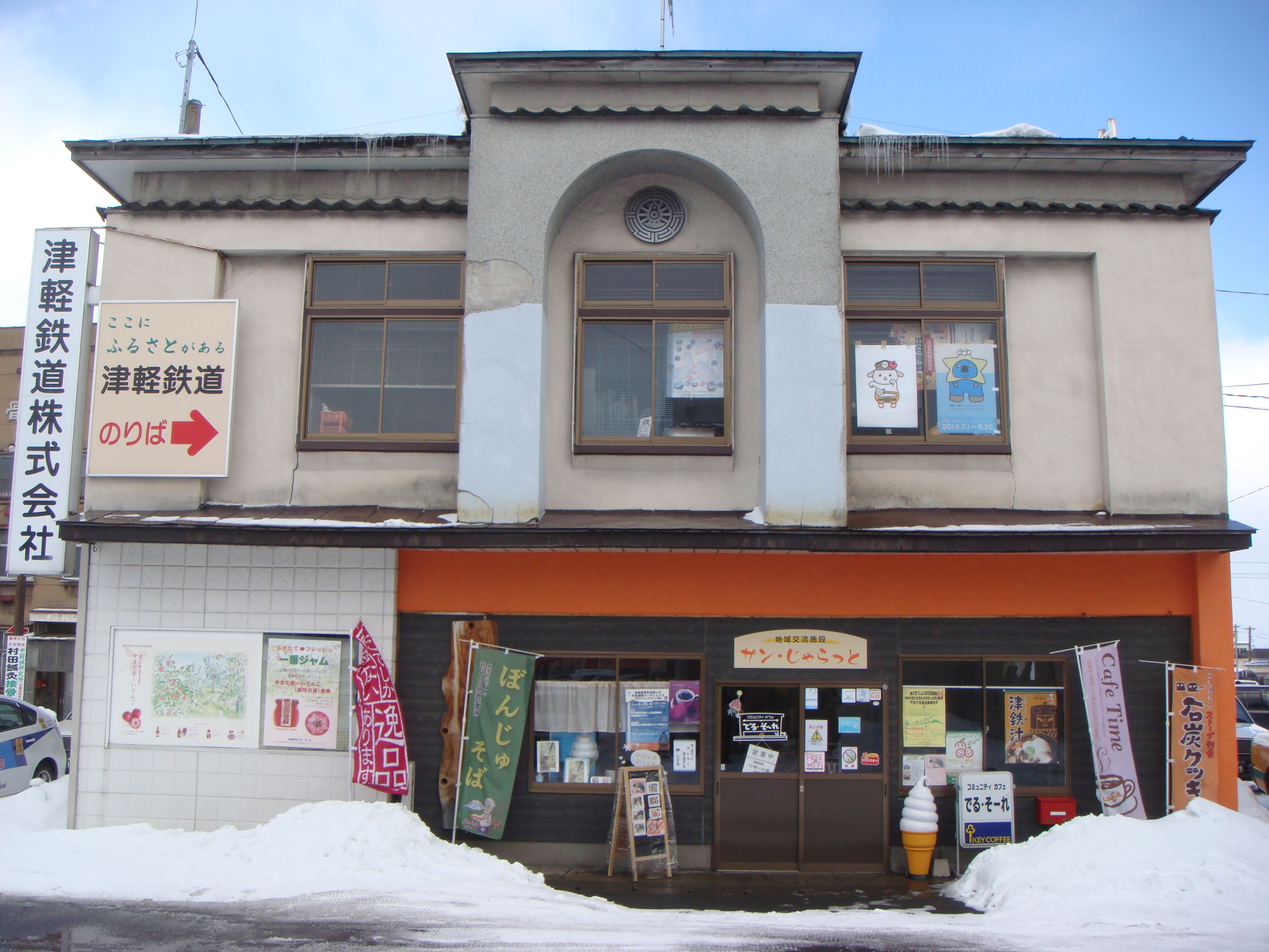 五所川原駅と隣接する場所に津軽鉄道の本社ビルがある。1階にある「サン・じゃらっと」という店は、津軽鉄道サポーターズクラブが津軽鉄道から借り受けて運営している。店の中は売店と「でる・そーれ」という名の飲食スペースになっている。