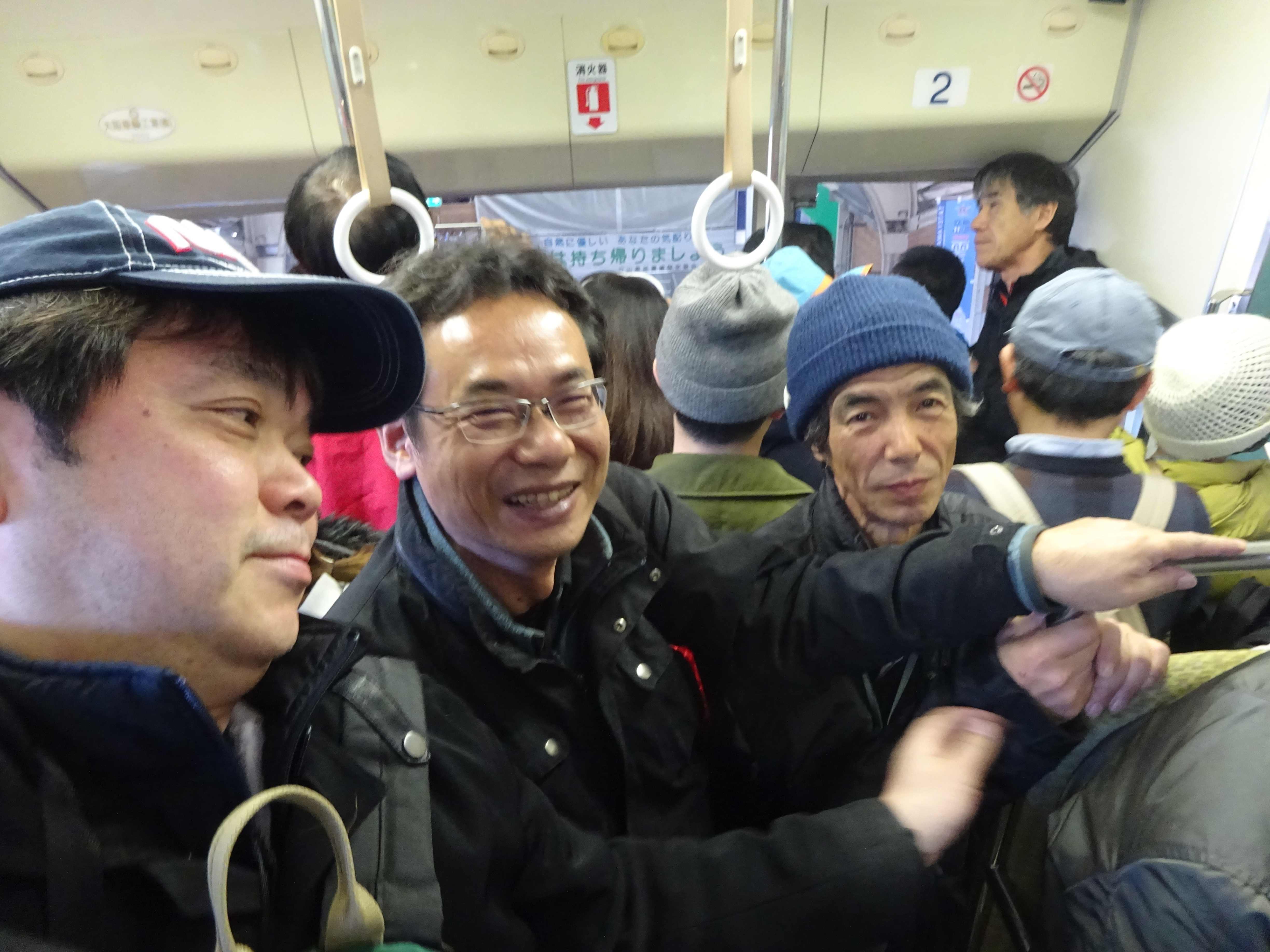 移動は強行軍で、東京行きの東海道線始発に乗らないと間に合わない。自宅から茅ヶ崎駅まではバイクで10分足らずだが、この時間は駐車場が開いていないので、40分かけて歩いていくことになった。M君、T君、F君が横浜駅で同じ電車に乗ってきた。8ヶ月ぶりの再会だが、M君がひどくやつれていた。なんでも3月から石巻でワカメ漁のアルバイトを始めたのだが、想像を超えた3K職場だったらしい。