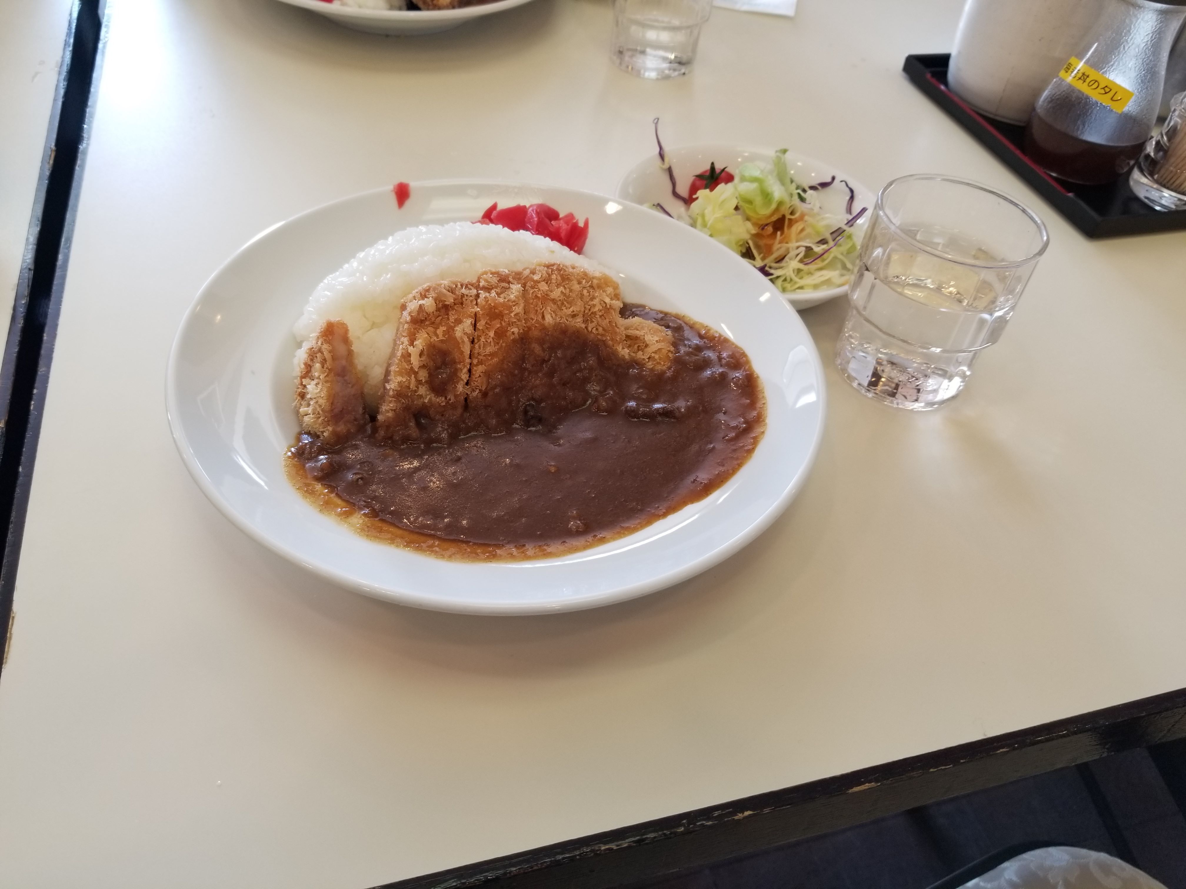席に戻ると、冷えたポークカツが乗ったカレーが置いてあった。