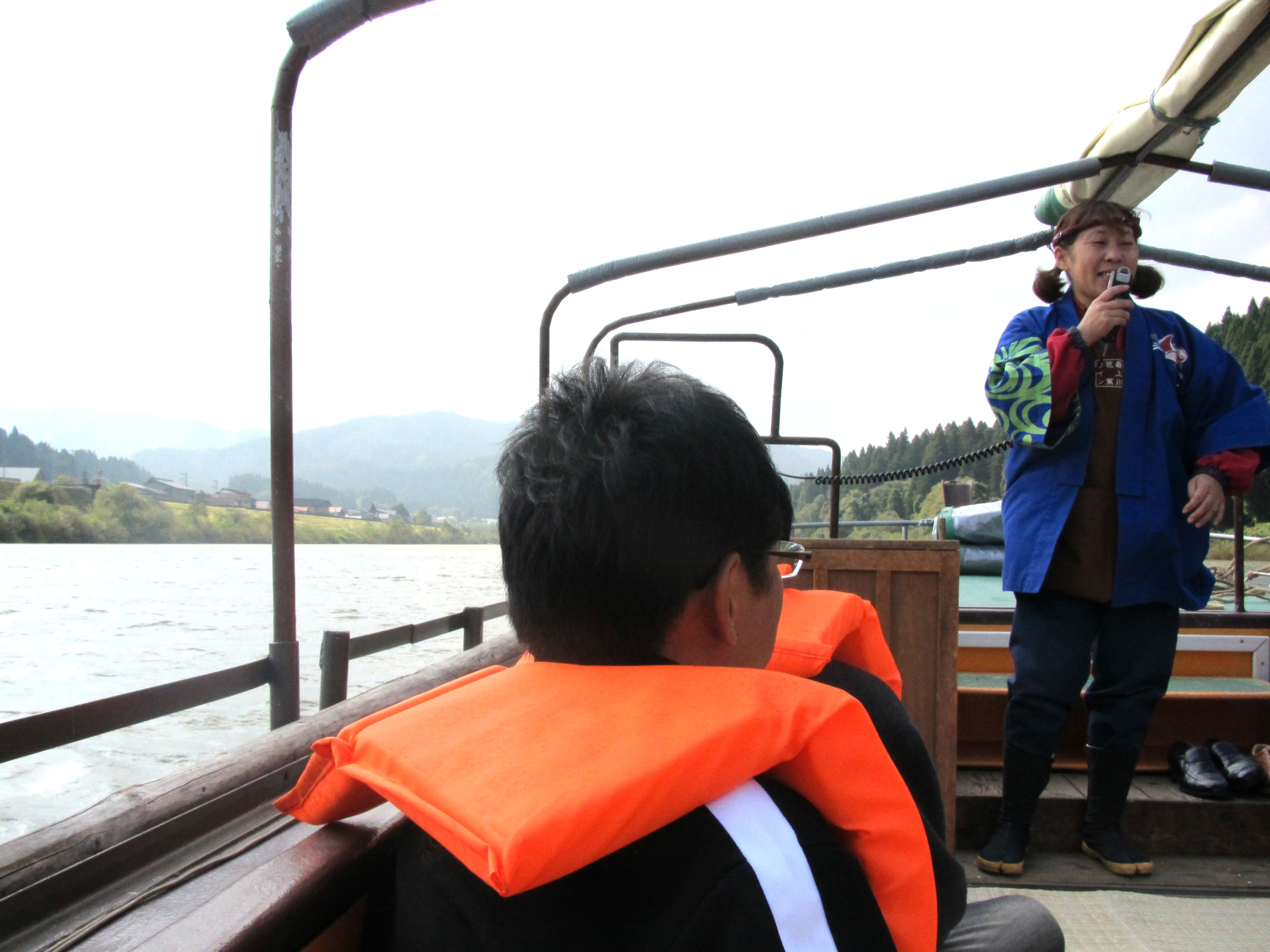 船頭は、年の頃なら70前後、民謡自慢の岸昭夫さん。何曲が披露されたが、確かに素晴らしい声だった。しかし、唄以外のガイドは至って退屈だ。話題は「おしん」のことばかりで、30年も前のテレビドラマをまるで昨日のことのように話す。ついていけなかった。