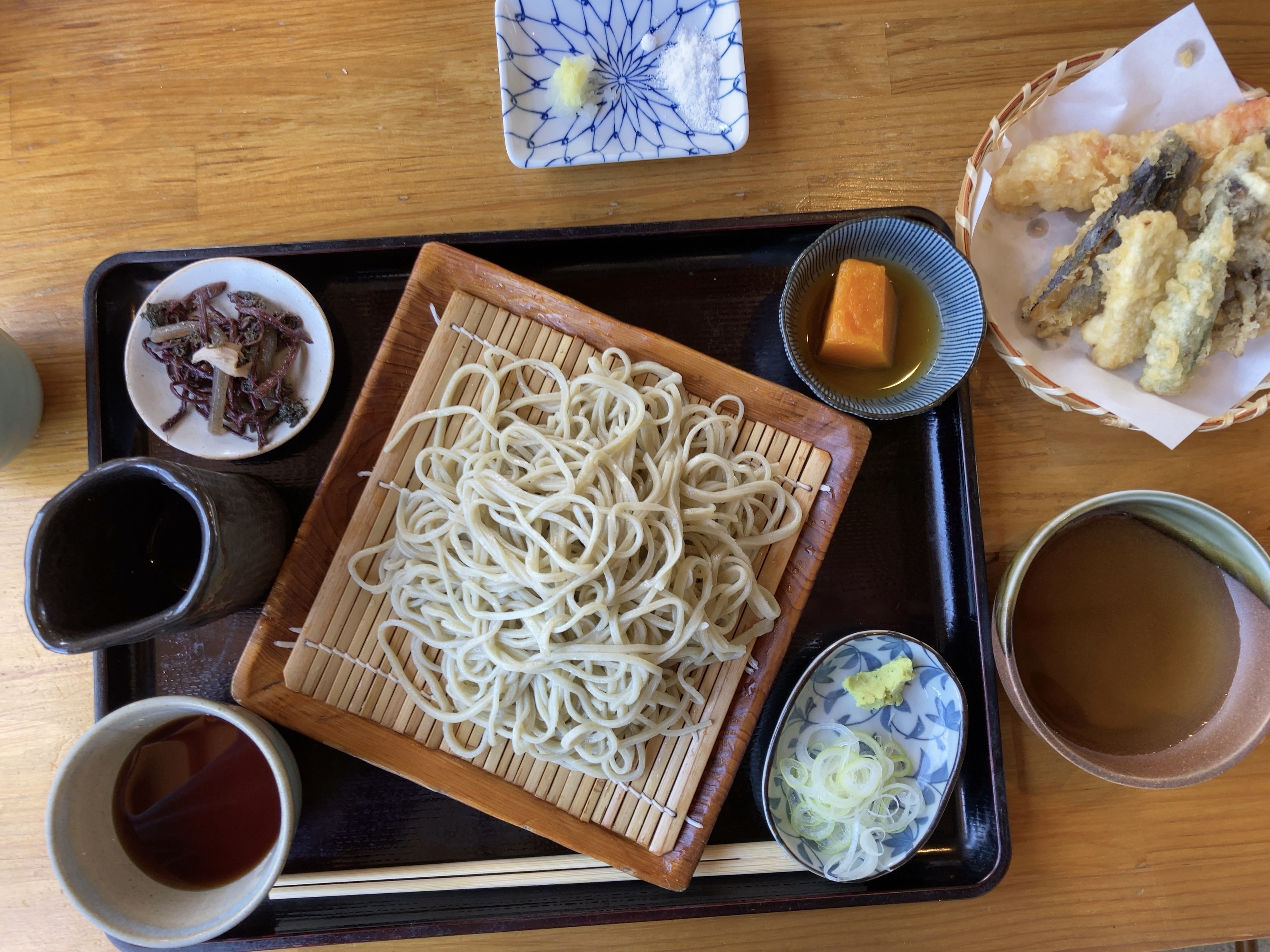 広い店内に先客が1組だけいた。蕎麦は「ダッタンそば」と「田舎そば」があり、「田舎そば」の「せいろとえび天ぷら」を注文。値段の割に量も多く、味も普通に美味かった。食べログの評価は3.16、口コミも概ね好意的だ。空いていたのは「琴の」の近所のせいかもしれない。