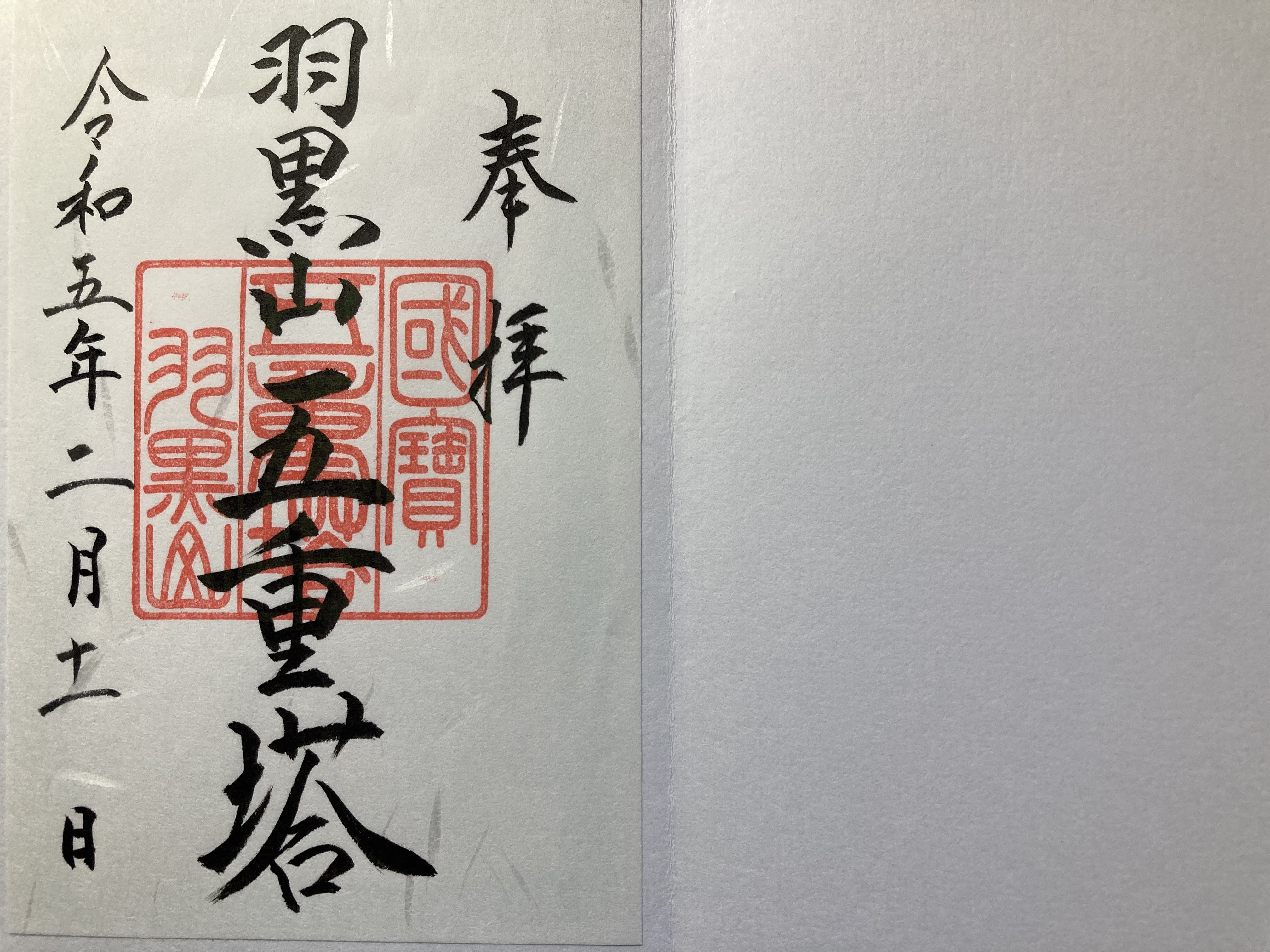 随神門の近くの社務所で五重塔の御朱印を貰ってから、あらためて羽黒山の出羽三山神社に向かった。