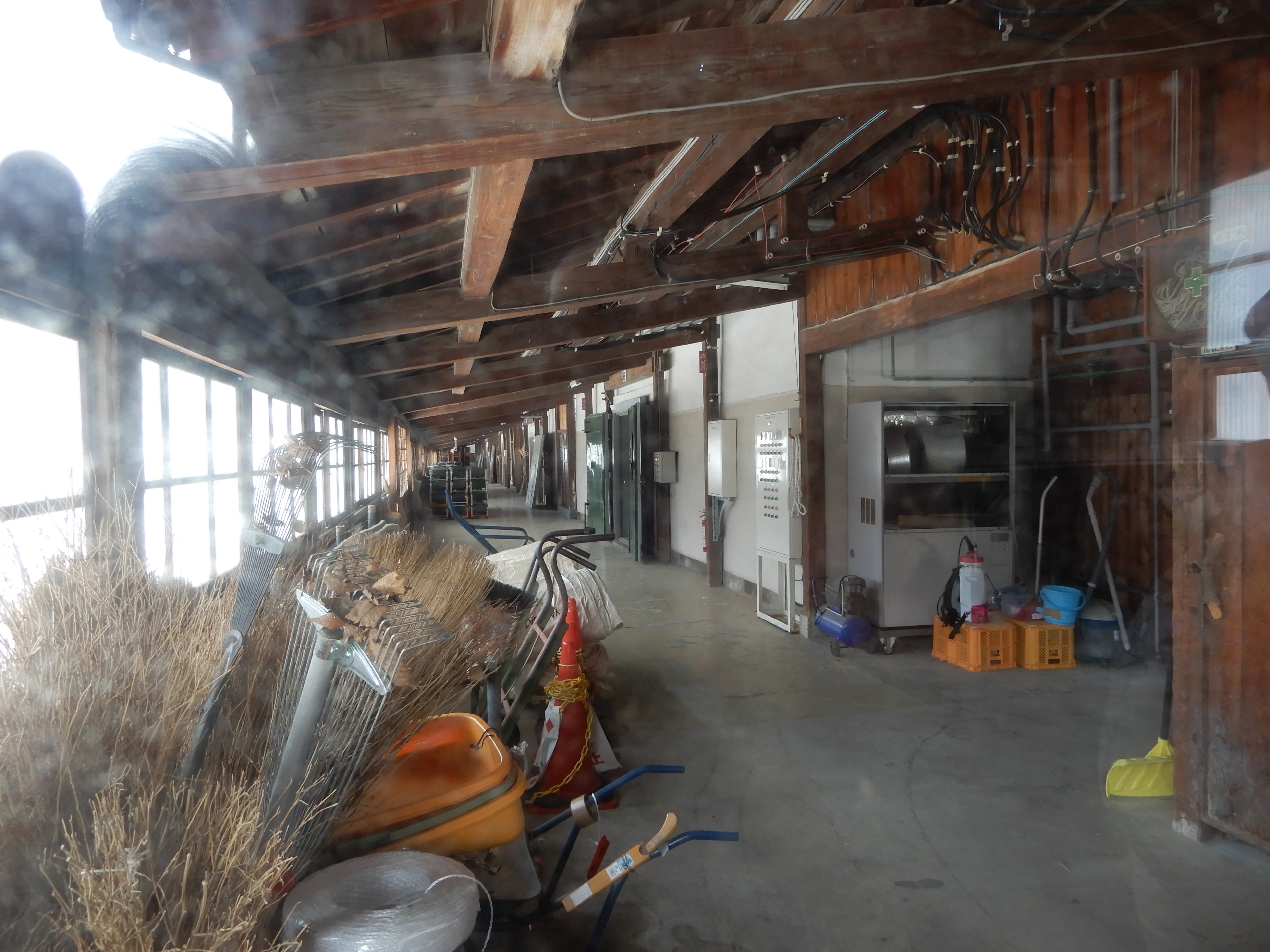 山居倉庫は、倉庫内の温度・湿度を一定に保つために当時の技術の粋を尽くして建てられた倉庫で、欅の木も西日や強風から倉庫を守るためのものだった。とは言え、現代の保管技術には比べるべくもなく、中を覗くと最新の冷蔵設備が設置されていた。