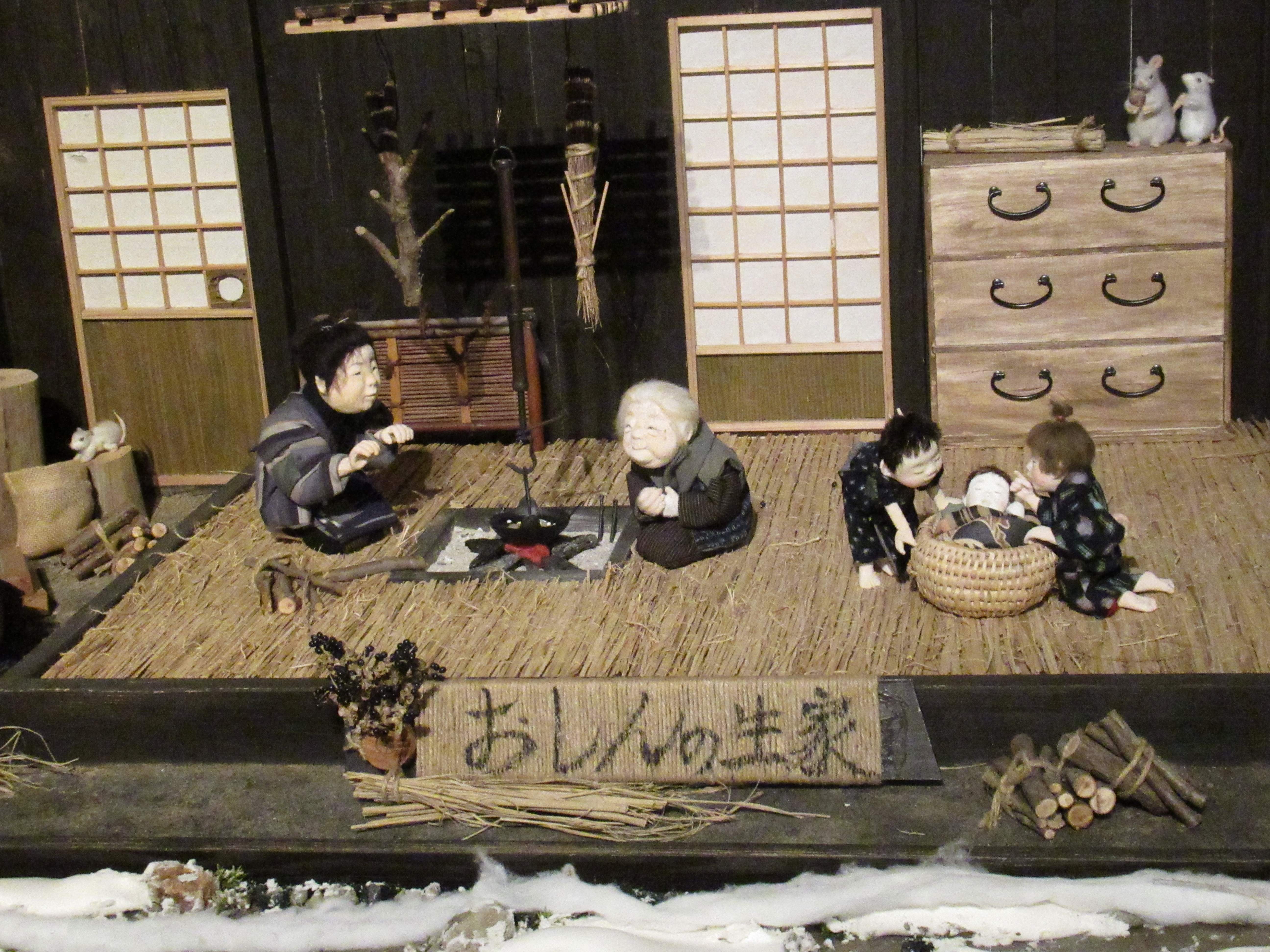 「庄内米歴史資料館」は休業中だったが、「酒田市観光物産館 酒田夢の倶楽」には入ることができた。目を引いたのが「おしん」の人形ギャラリー。また「おしん」だ。原作者の橋田壽賀子は山居倉庫に来て、米1俵で売られていく少女の話を思いついたのだとか。