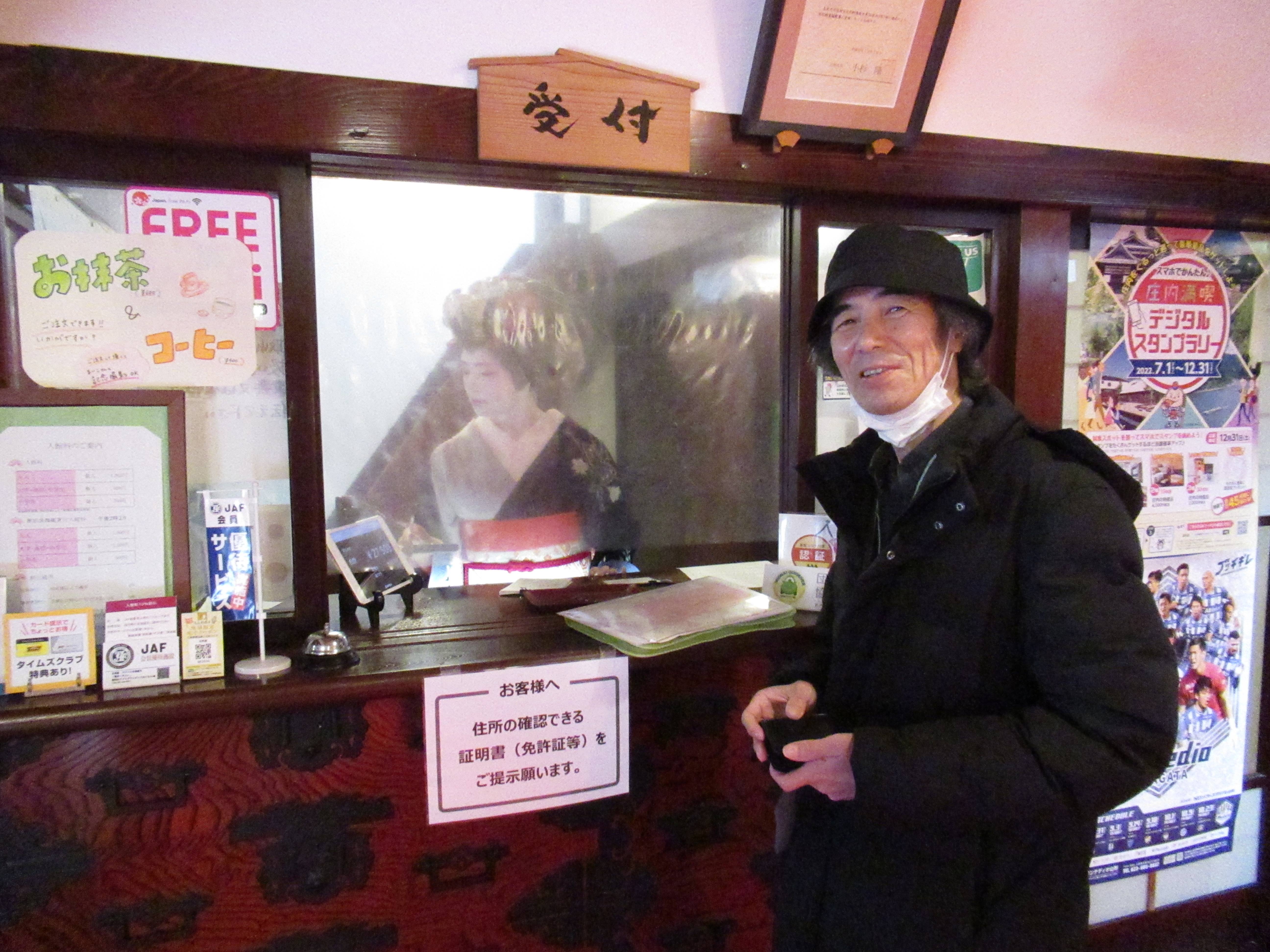 あつみ温泉は、温海川のほとりに7件の温泉宿がある小さな温泉街で、共同風呂や足湯などの施設も整備されている。冬でなければ浴衣姿で温泉街を散策できたかもしれない。