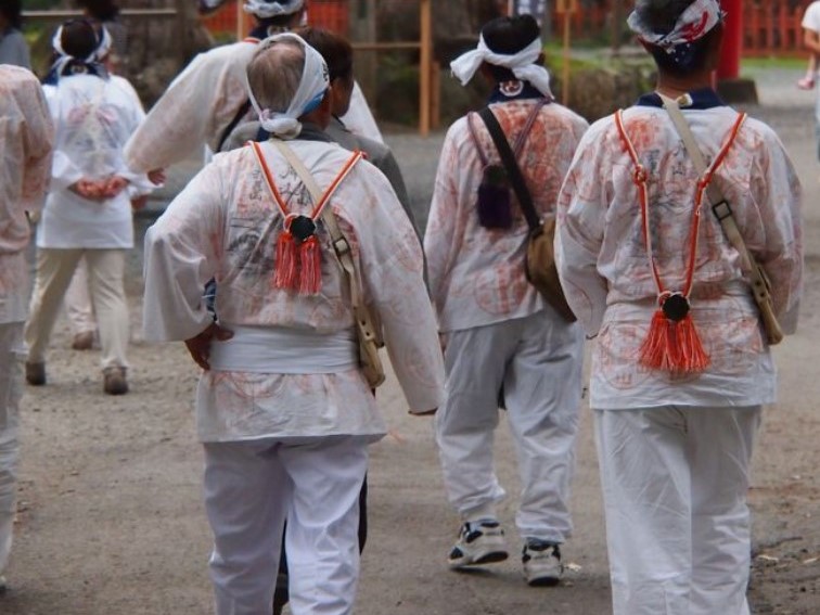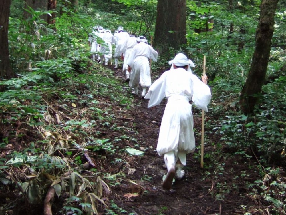 白装束で山に入るのは修験者だけではない。山麓の農家が雪深い春の月山に登り、五穀豊穣の祈りを捧げる伝統行事が今も行われている。また、出羽三山信仰には講という先祖代々の信仰集団があり、夏には列をなして三山を参拝する。そして、行く先々で白装束に大きな御朱印を押して貰う。