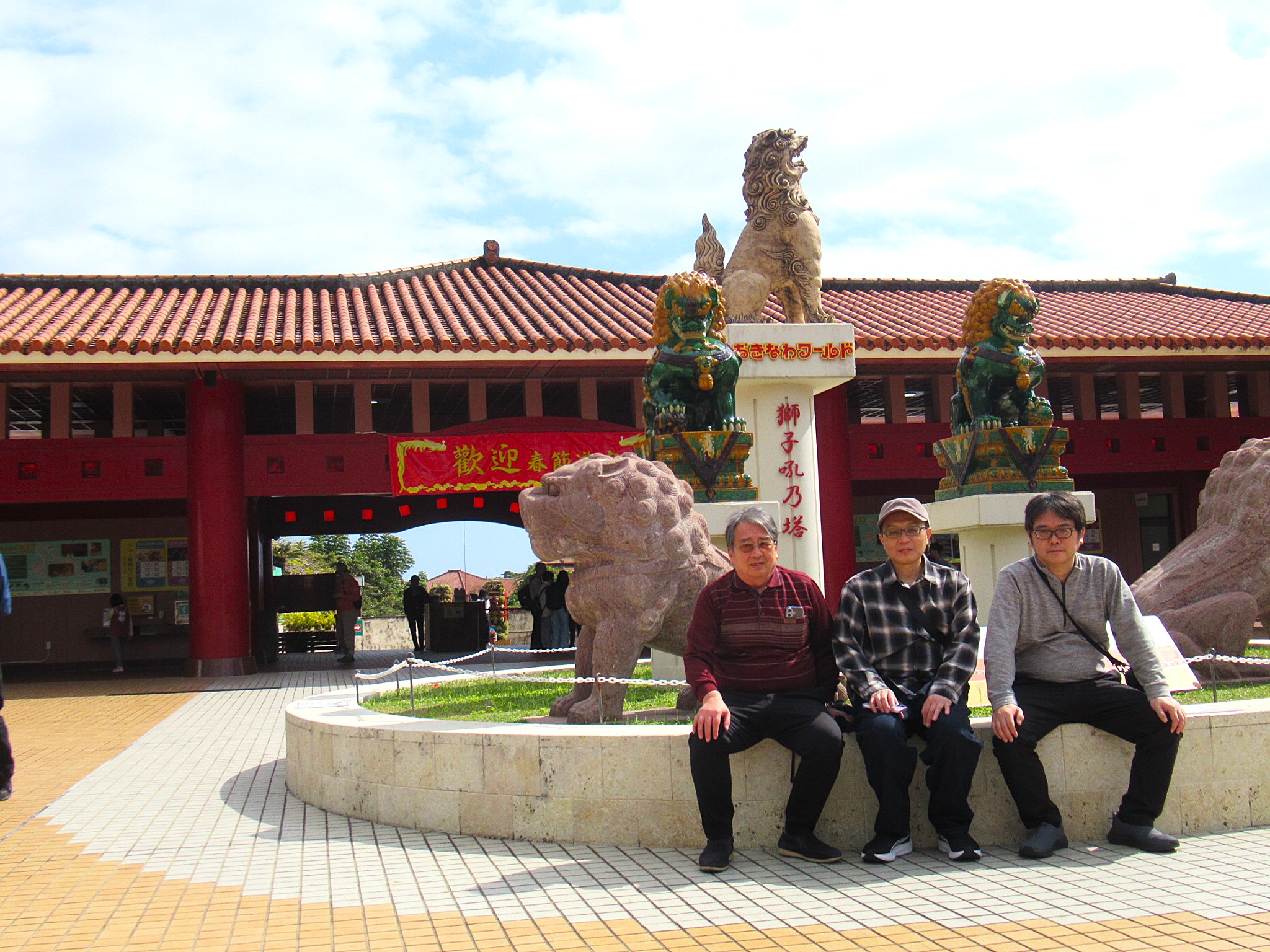 首里城公園には無料駐車場が2箇所あるが、どちらも満車で、近くの有料駐車場を利用することになった。このあたりは急坂が多い。また、首里城公園に向かう途中に首里高校があり、放課後の部活の様子が見えた。首里高校は沖縄勢として初めて甲子園に出場した名門高だが、聞こえてきたのは野球ではなくバスケットボールの音だった。